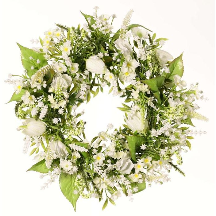 Corona decorativa de verano FEDORA, lavanda, lathyrus, blanca, Ø 30 cm