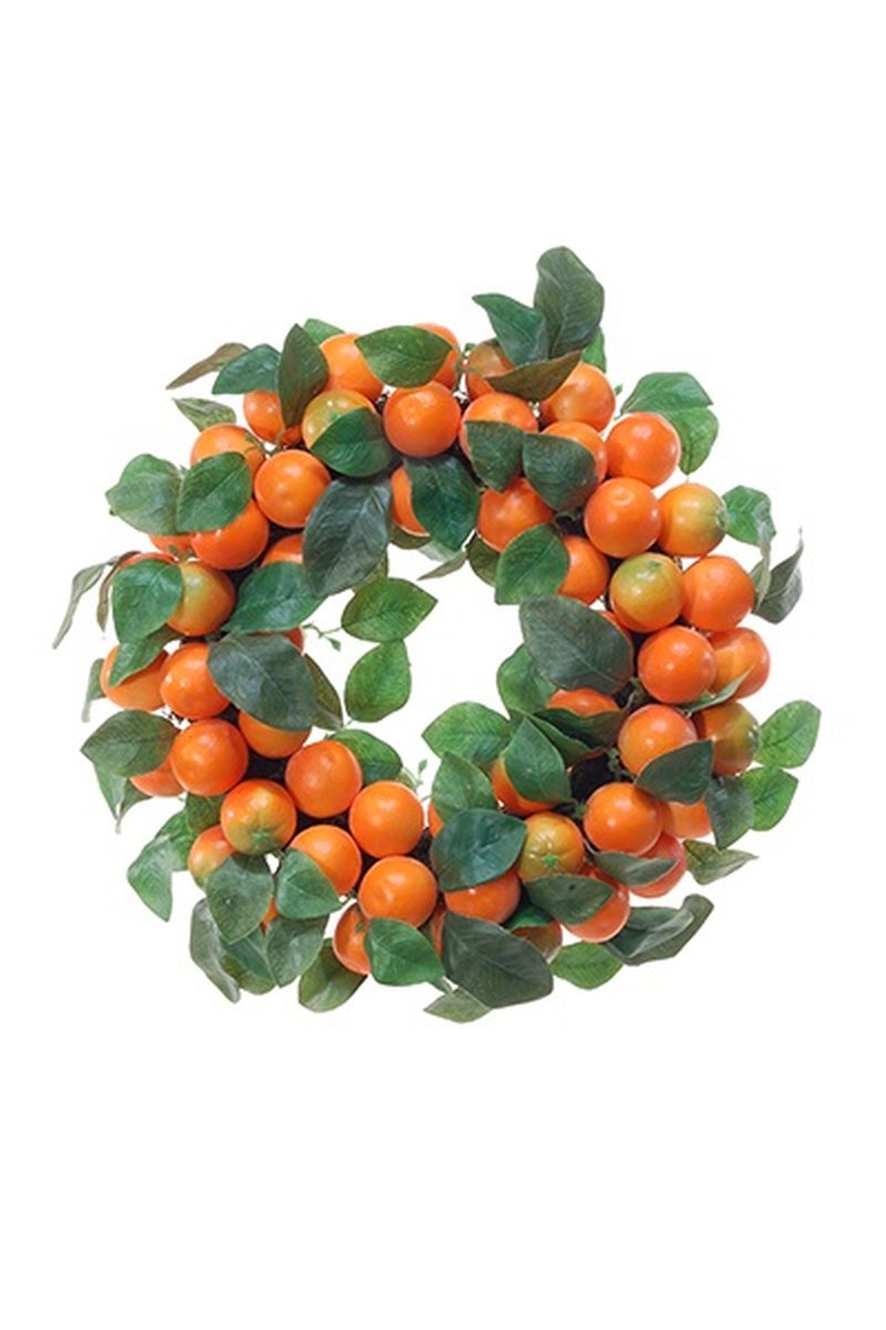 La corona de mandarinas artificiales KERRIE es una gran decoración, por ejemplo, como saludo de bienvenida en la puerta principal.