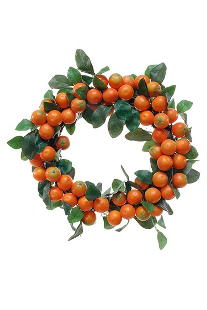 La corona de mandarinas artificiales KERRIE es una gran decoración, por ejemplo, como saludo de bienvenida en la puerta principal.