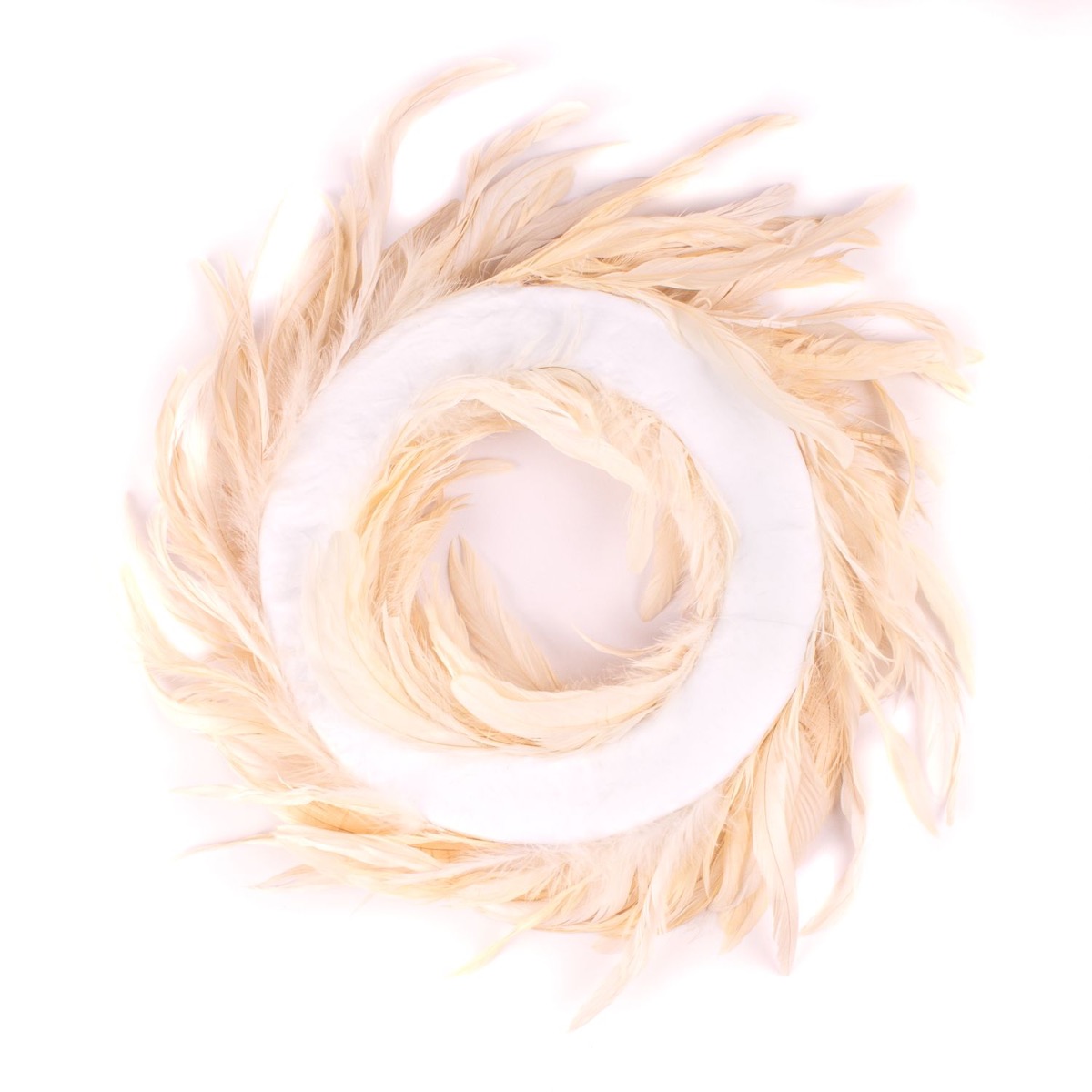 Corona decorativa natural de plumas de pavo real NORDIAN, blanqueadas, Ø 40 cm