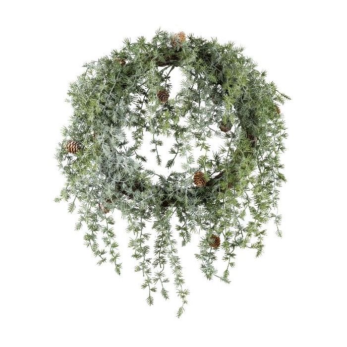 Corona decorativa para techo cedro MOPLI, piñas, helada, verde-blanca, Ø 35 cm