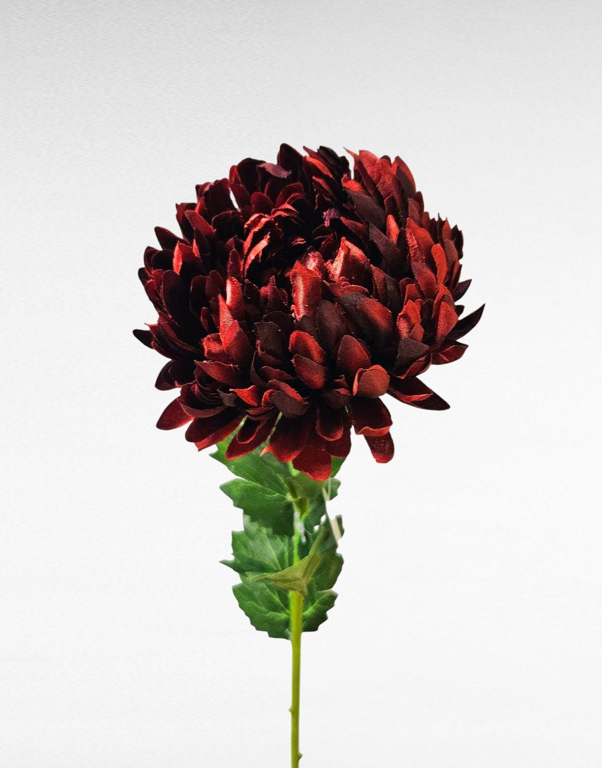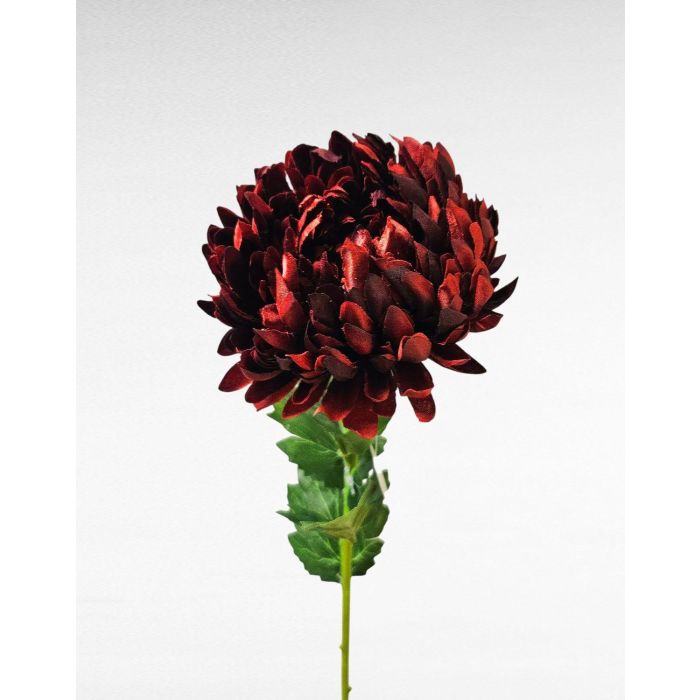 Crisantemo artificial HIKJUN, rojo burdeos, 65 cm, Ø 12 cm