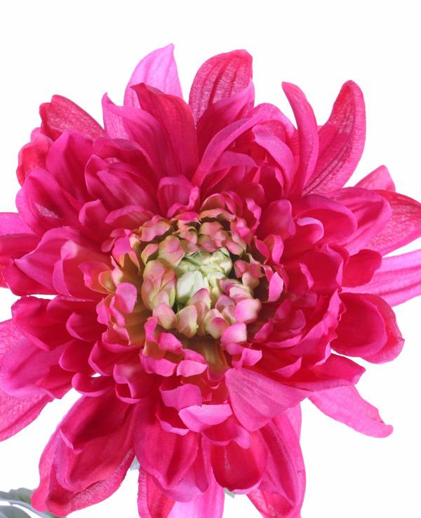 La flor textil de crisantemo AMANDI en palo es de color rosa. El crisantemo artificial mide unos 75 cm de largo y tiene un diámetro de flor de unos 15 cm.