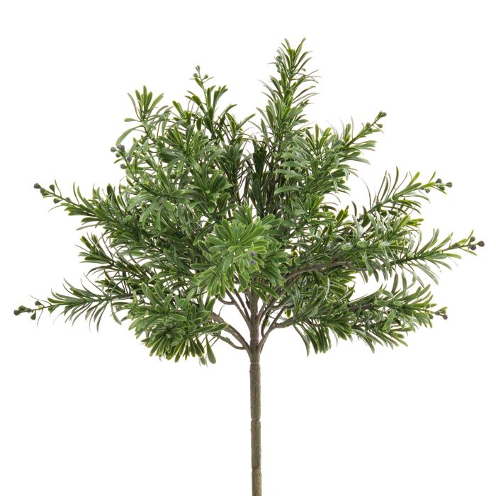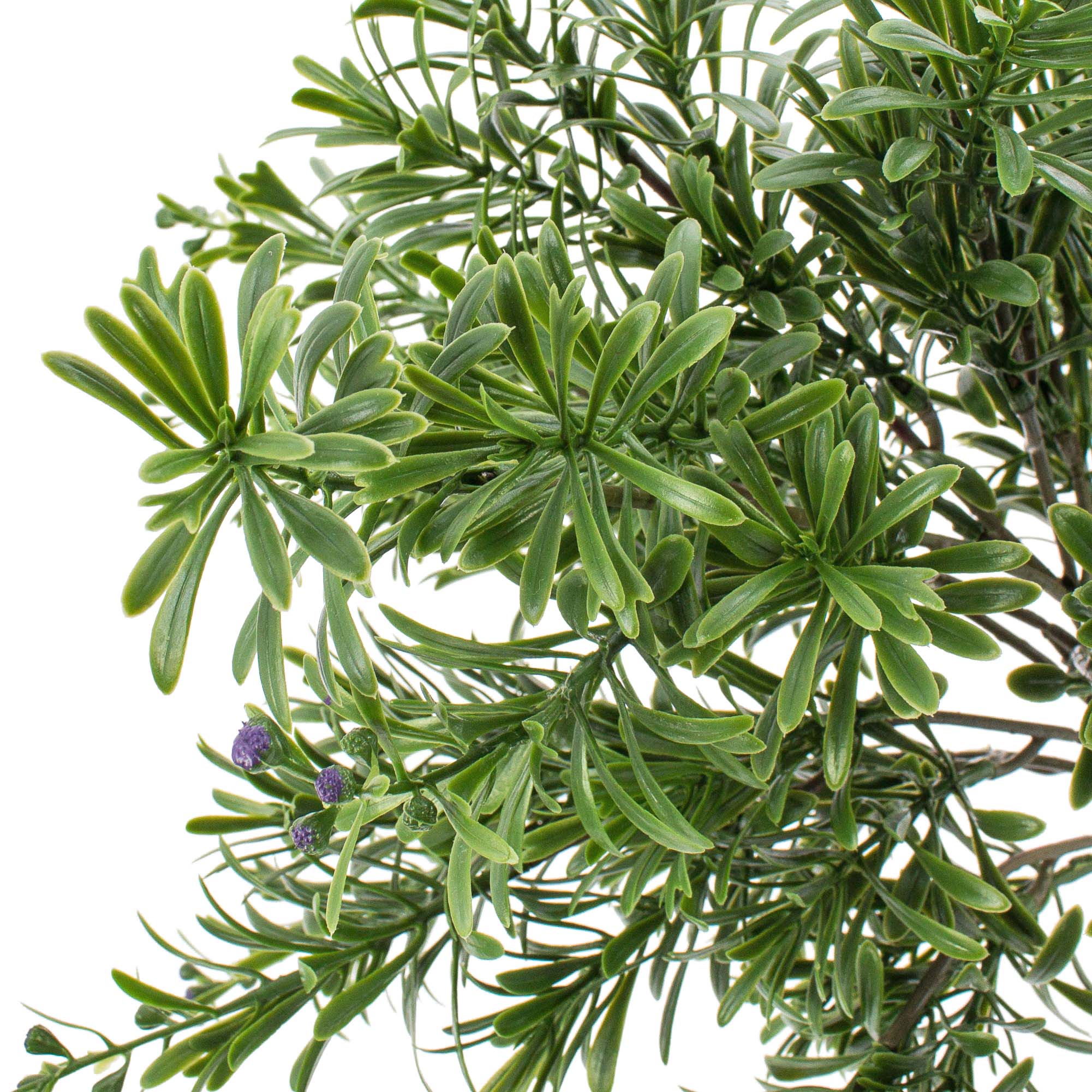 - Con cerca de 85 gruesas hojas de forma alargada en color verde elaboradas con material sintético de primera calidad y pequeñas bayas