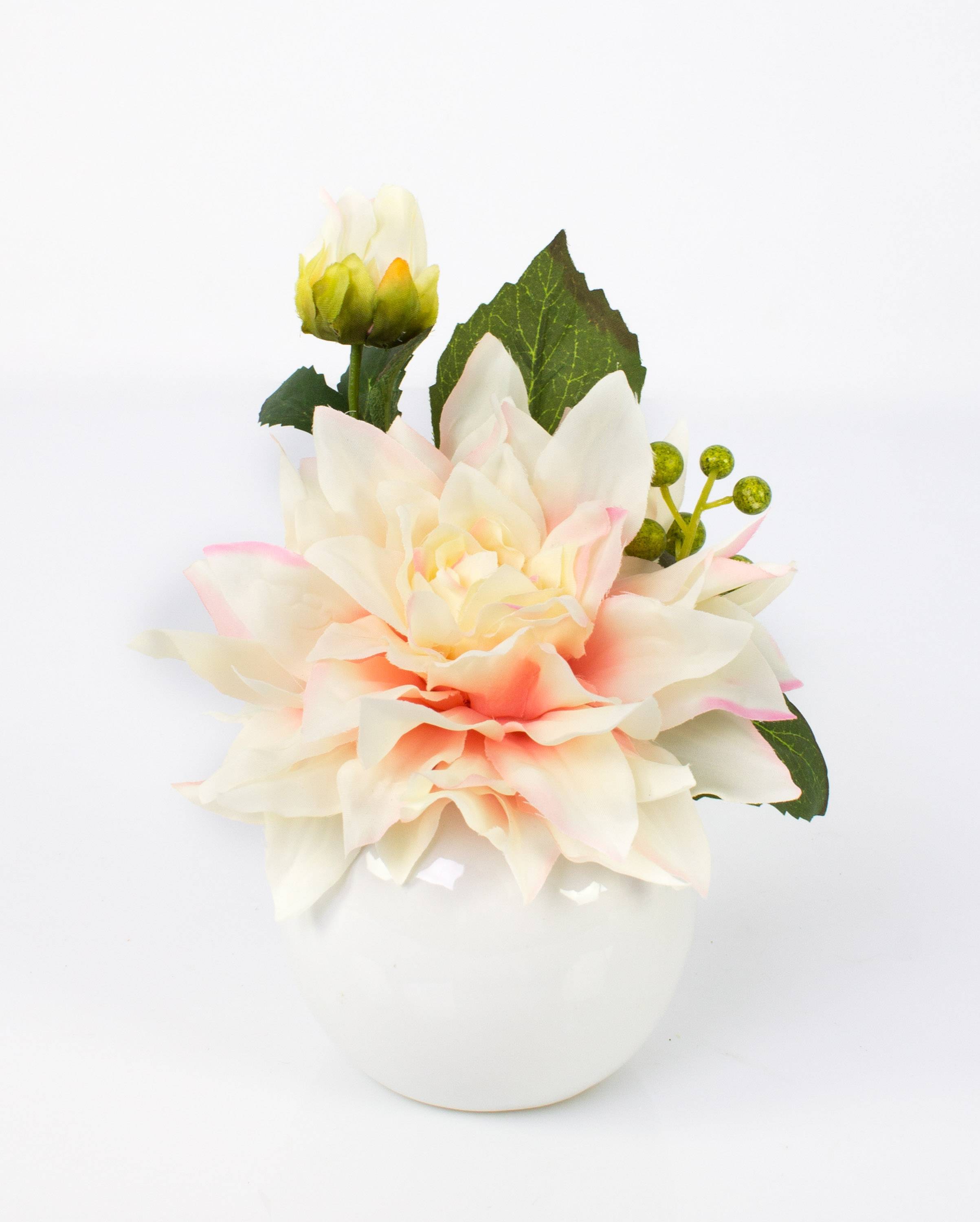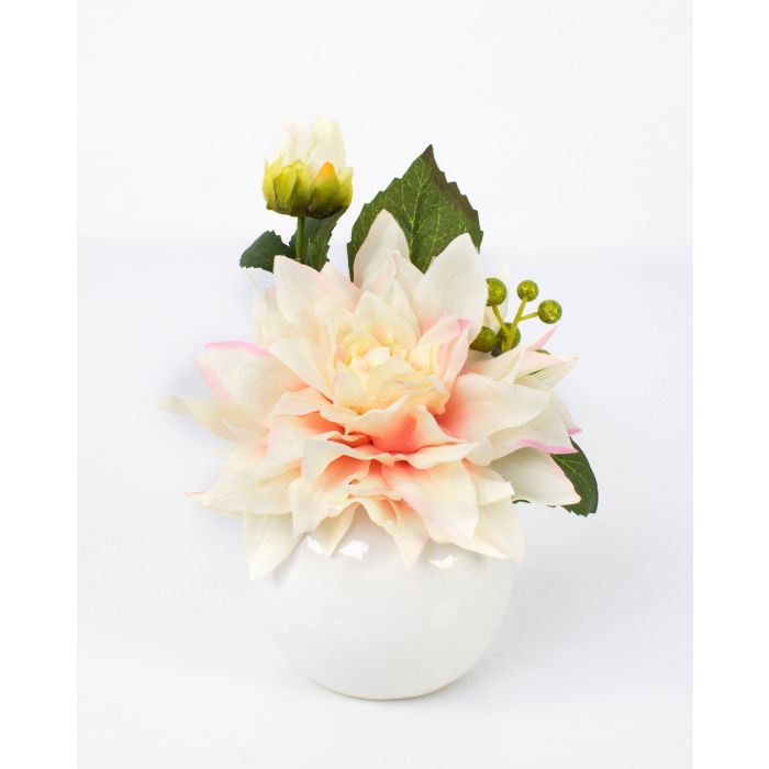 Dalia artificial FOTINI en maceta de cerámica, crema-rosa, 20cm, Ø17cm