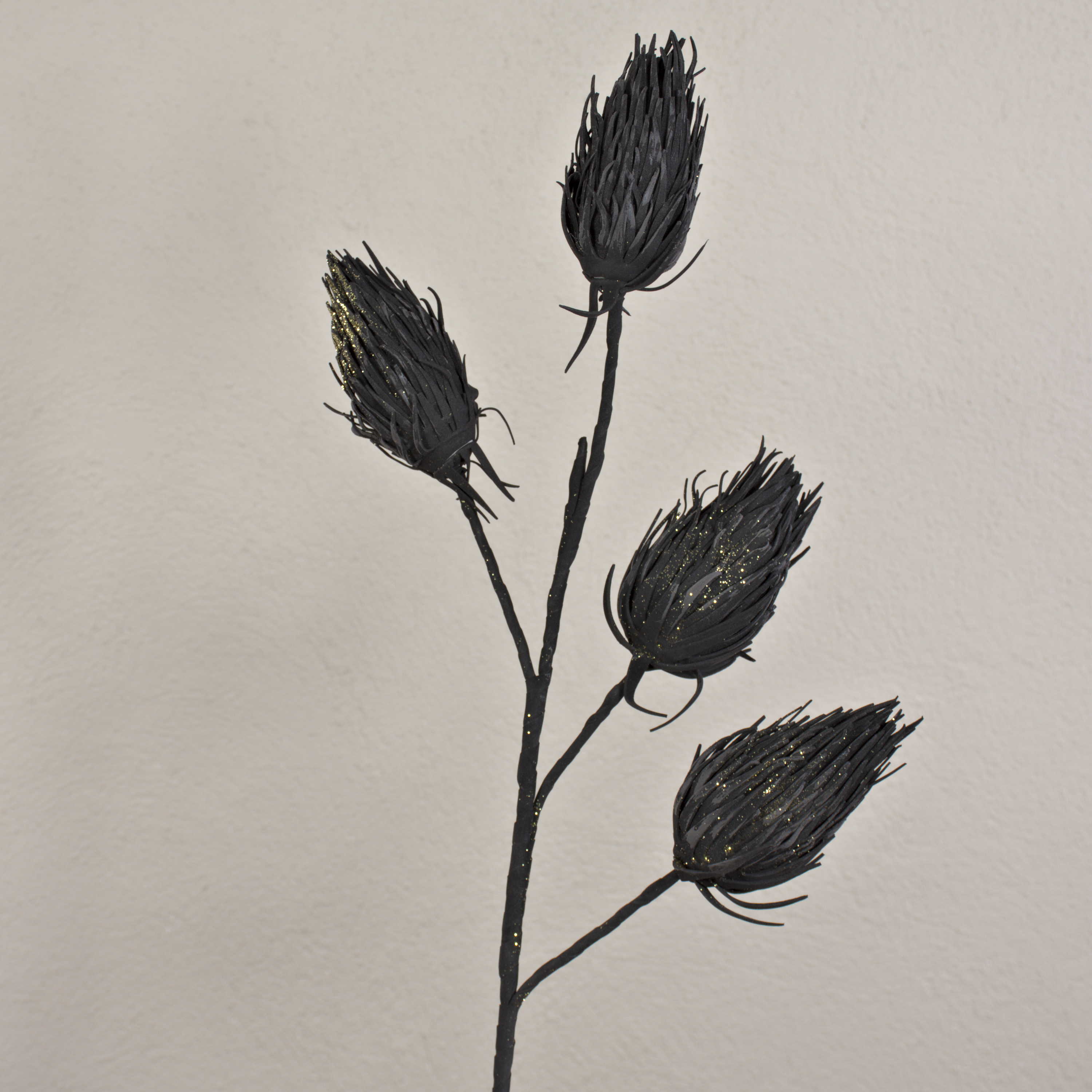 Decoración cardo noble espuma plástica MISAEL con purpurina, negro, 120 cm