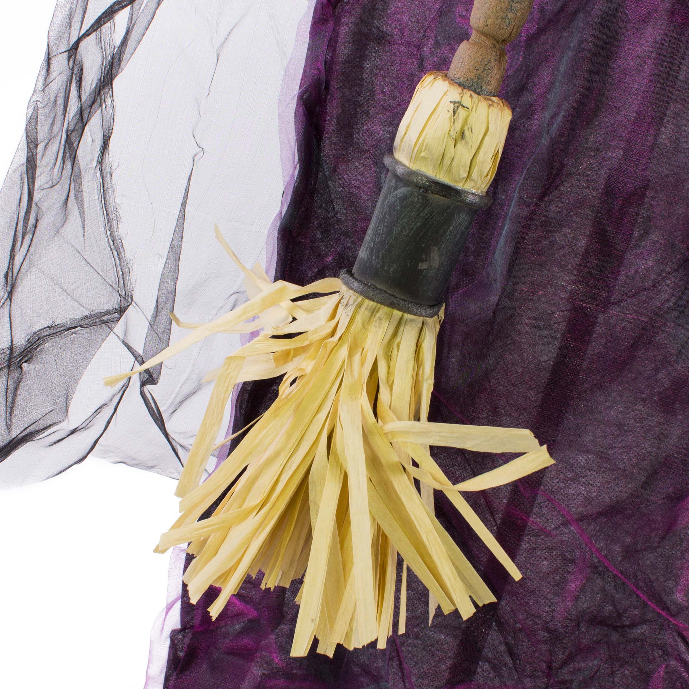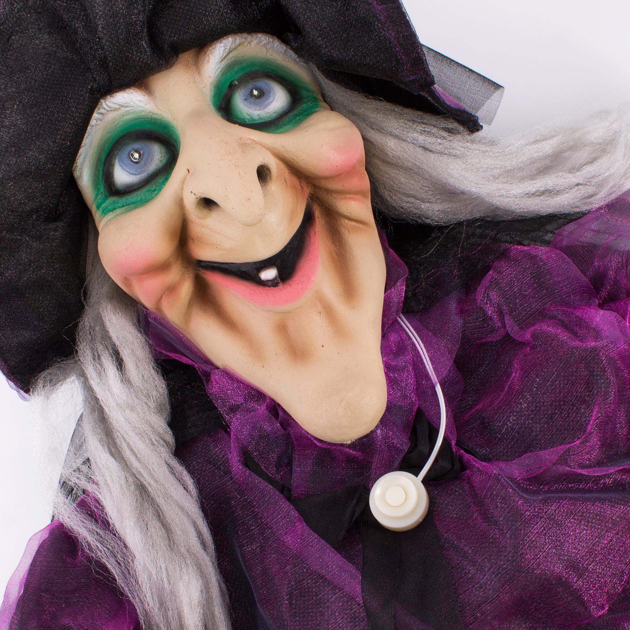 Decoración de Halloween Bruja FERDERRA con función de movimiento y sonido, escoba, LED, 175 cm