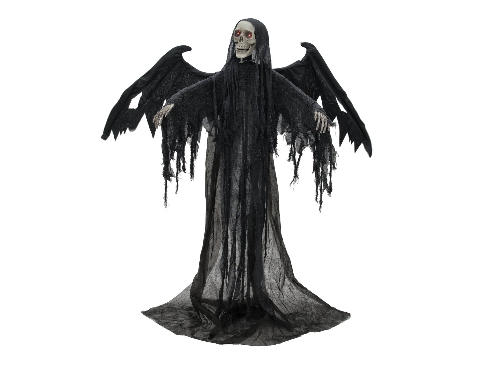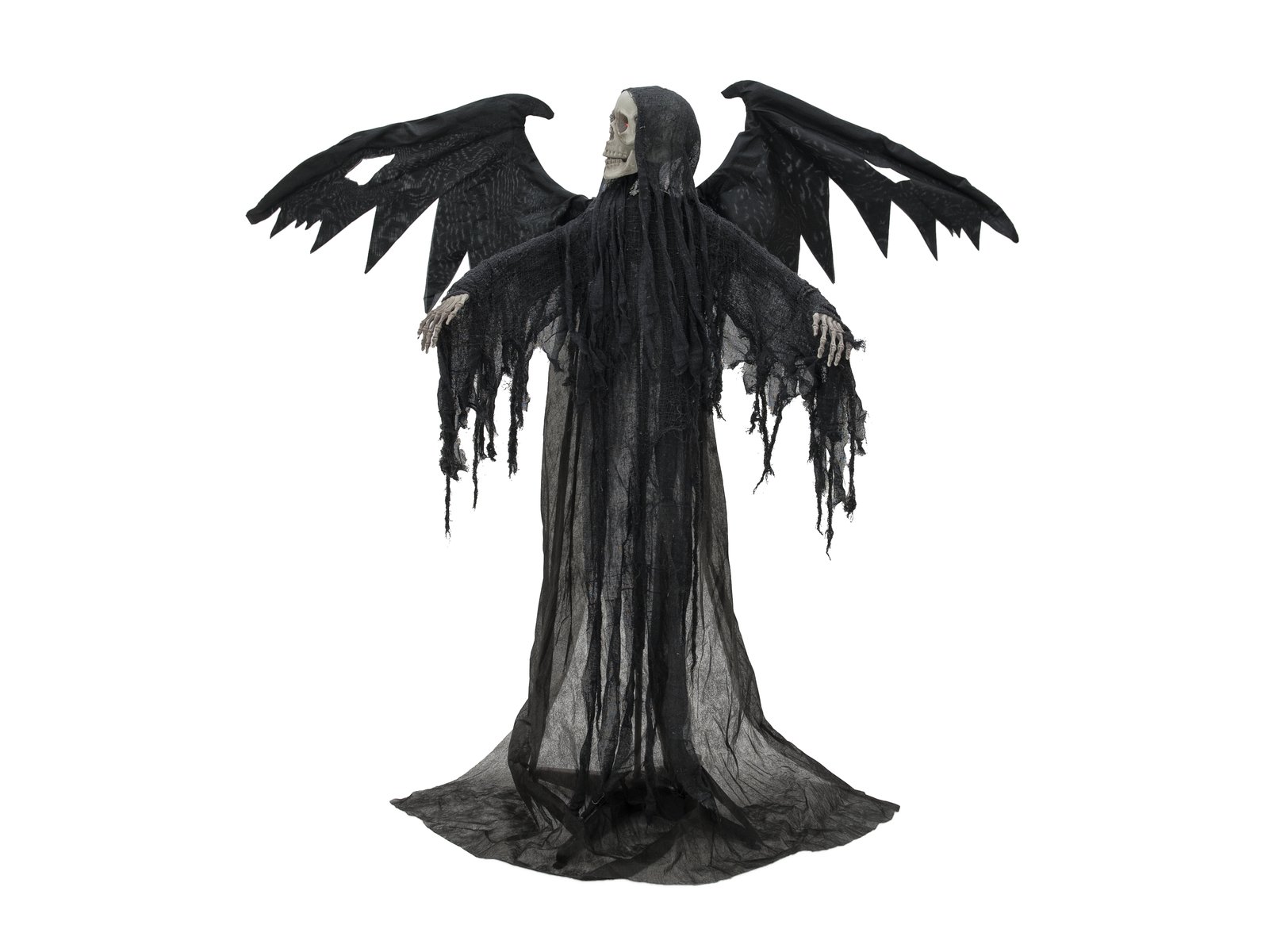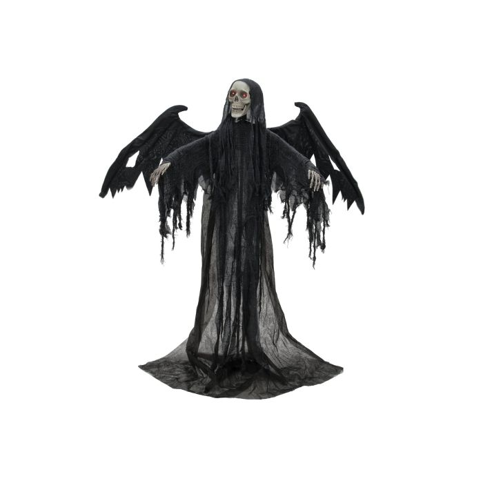 Decoración de Halloween Esqueleto Ángel de la Muerte WOTAN con alas, risa espeluznante y función de movimiento, LED, 40 x 100 x 175 cm