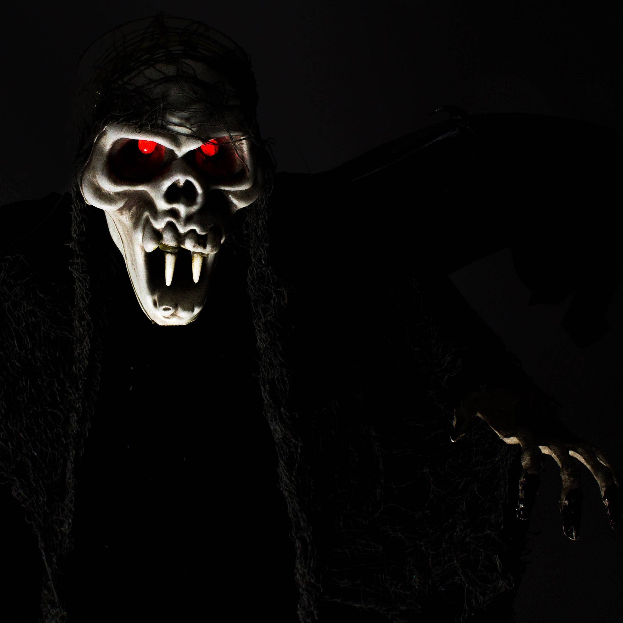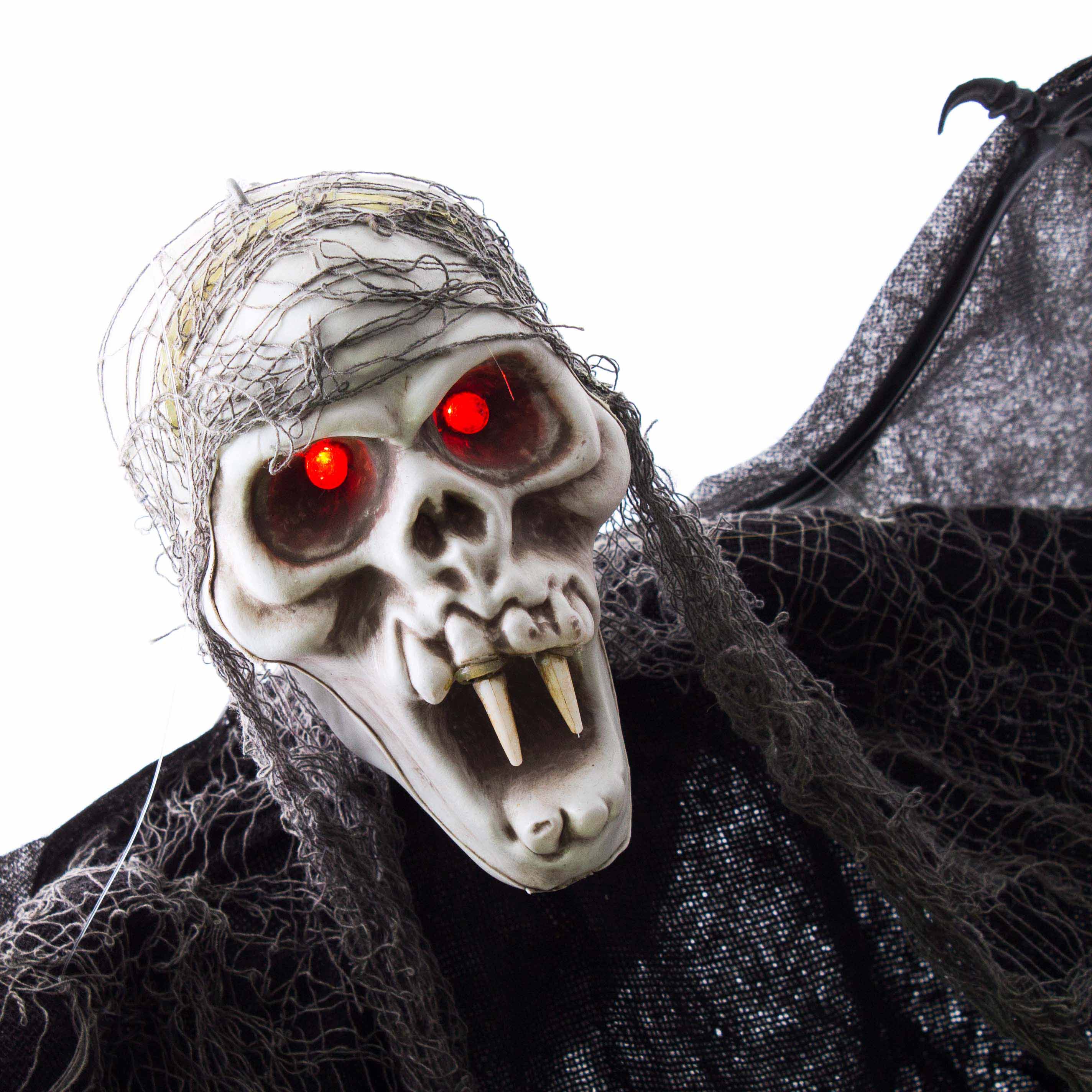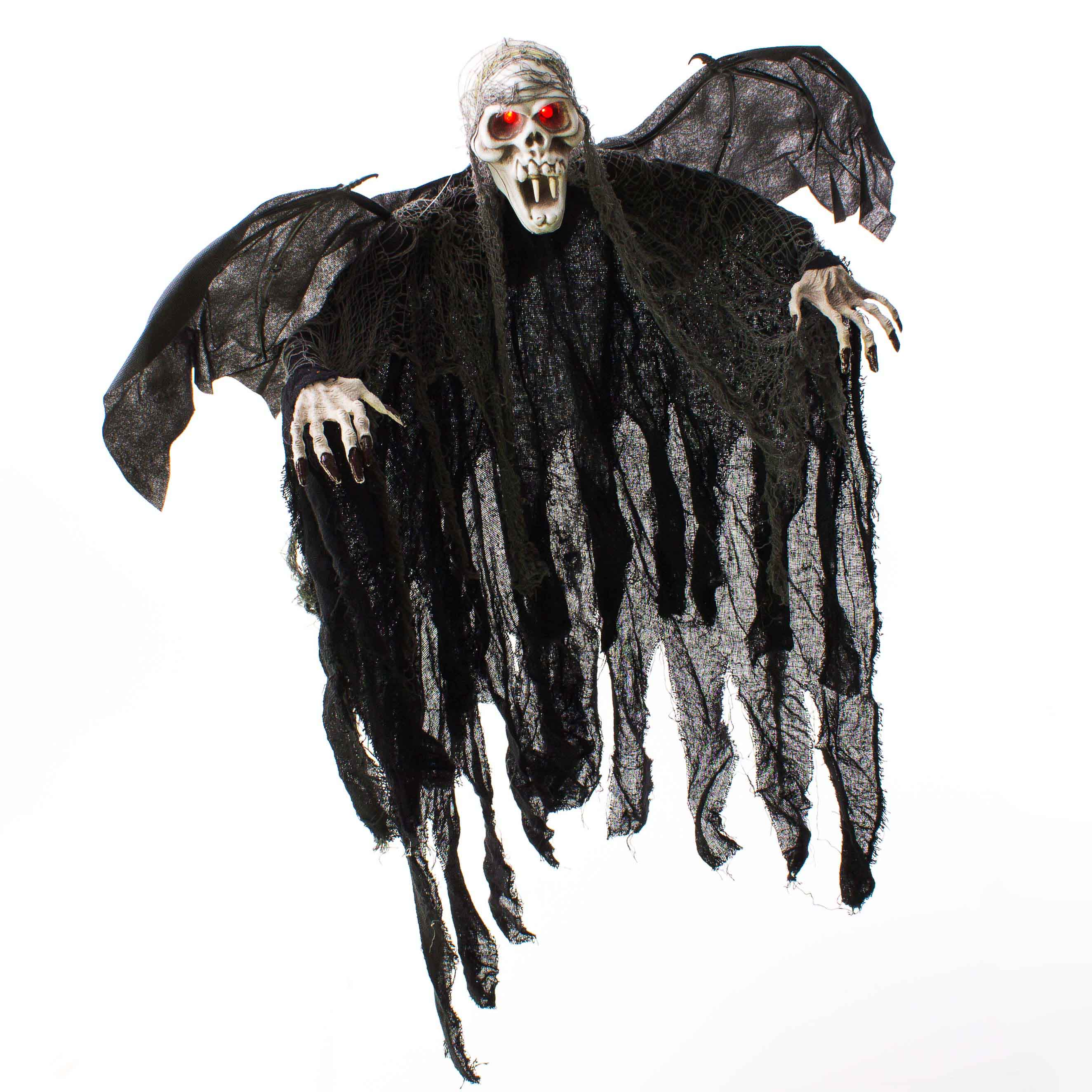 Decoración de Halloween Esqueleto fantasma ALFIE con alas de murciélago, LED, 85 cm