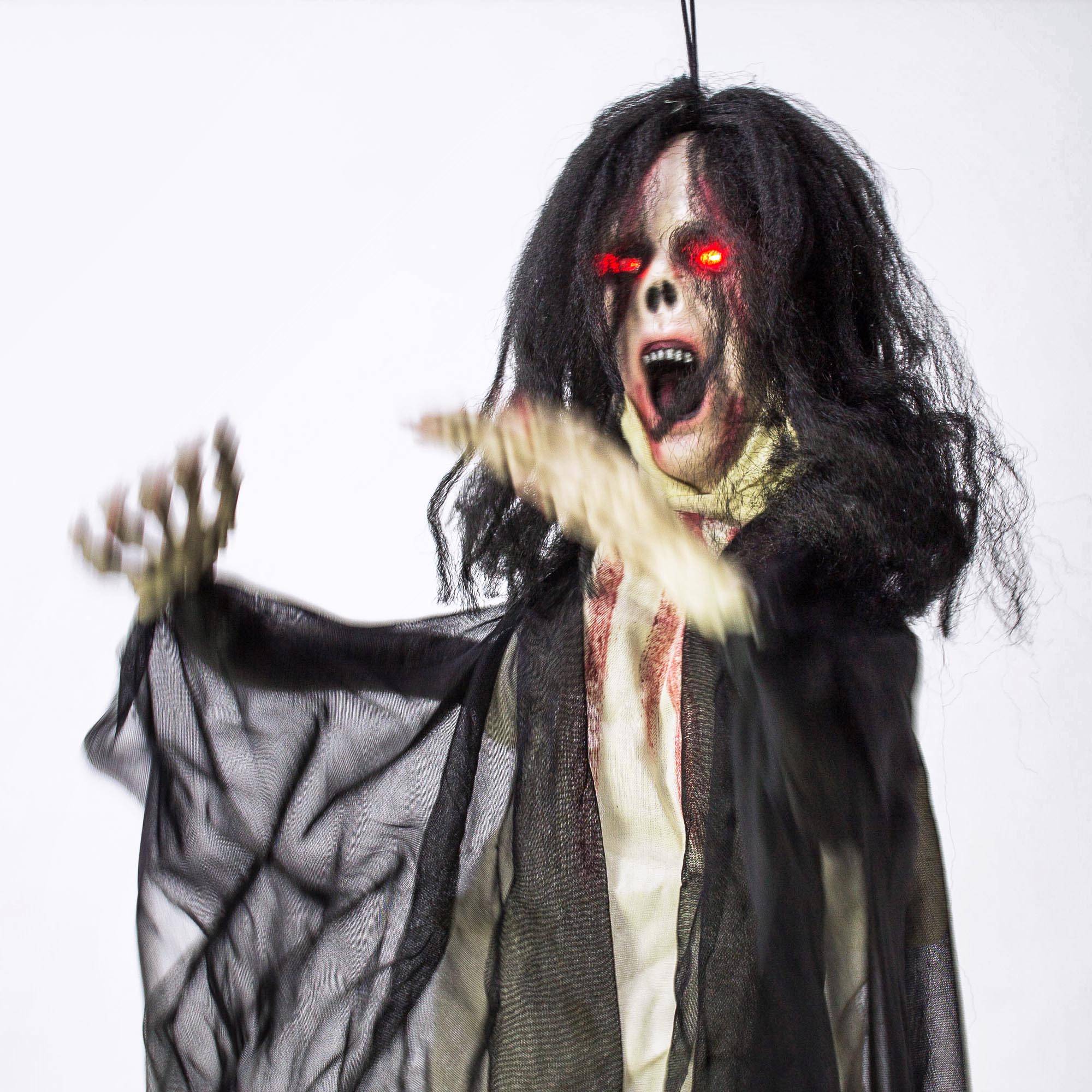 Decoración de Halloween fantasma / figura fantasma SKYLER con función de movimiento y sonido, LED, 95 cm