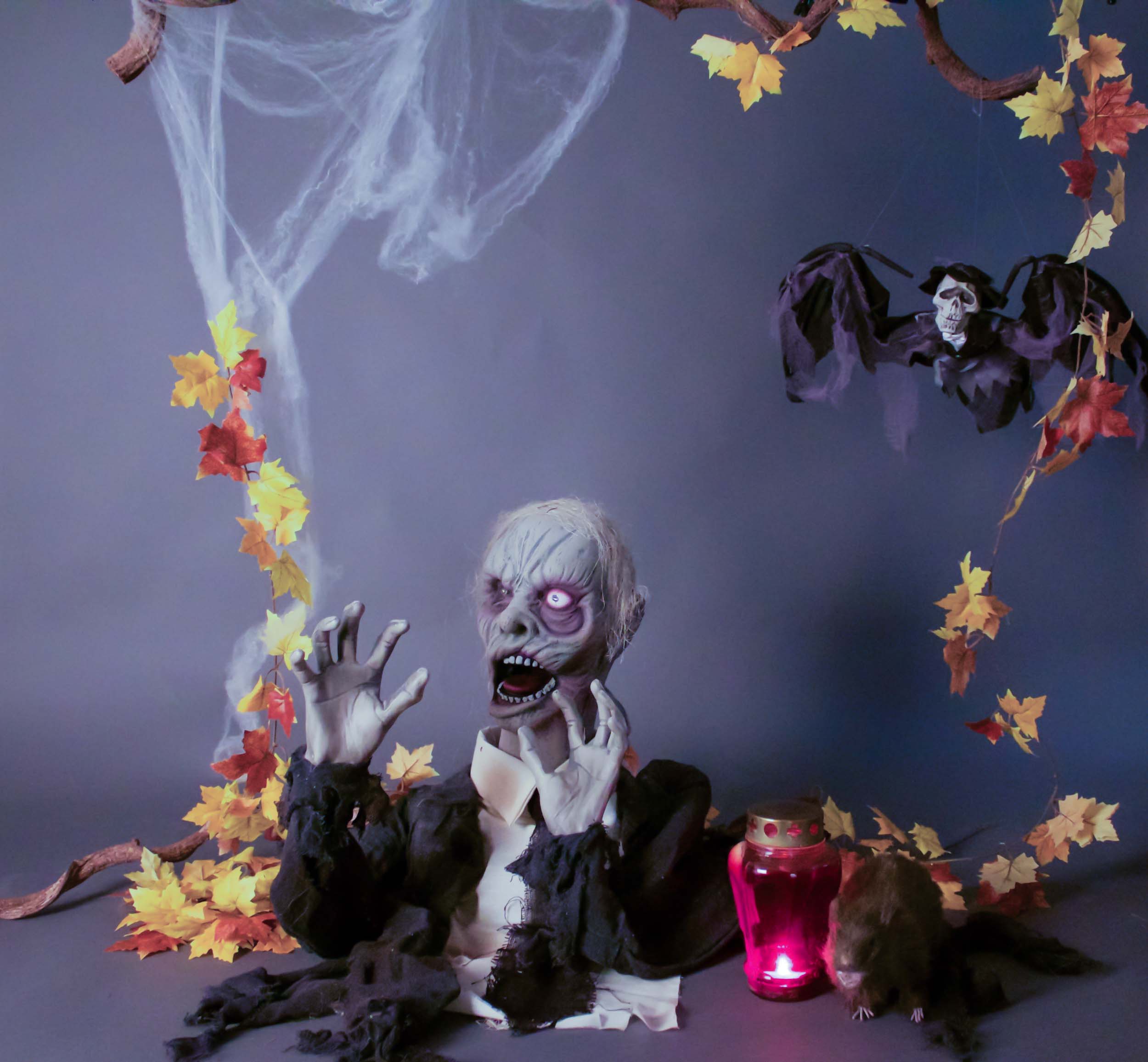 Decoración de Halloween Rata STOFFEL, aspecto natural, marrón, 50 cm