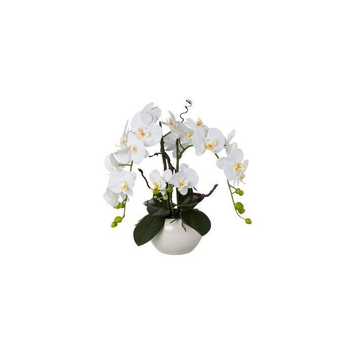Decoración de orquídea con ramas de sauce retorcido LULUDI, maceta de cerámica blanca, raíces blancas, 55 cm