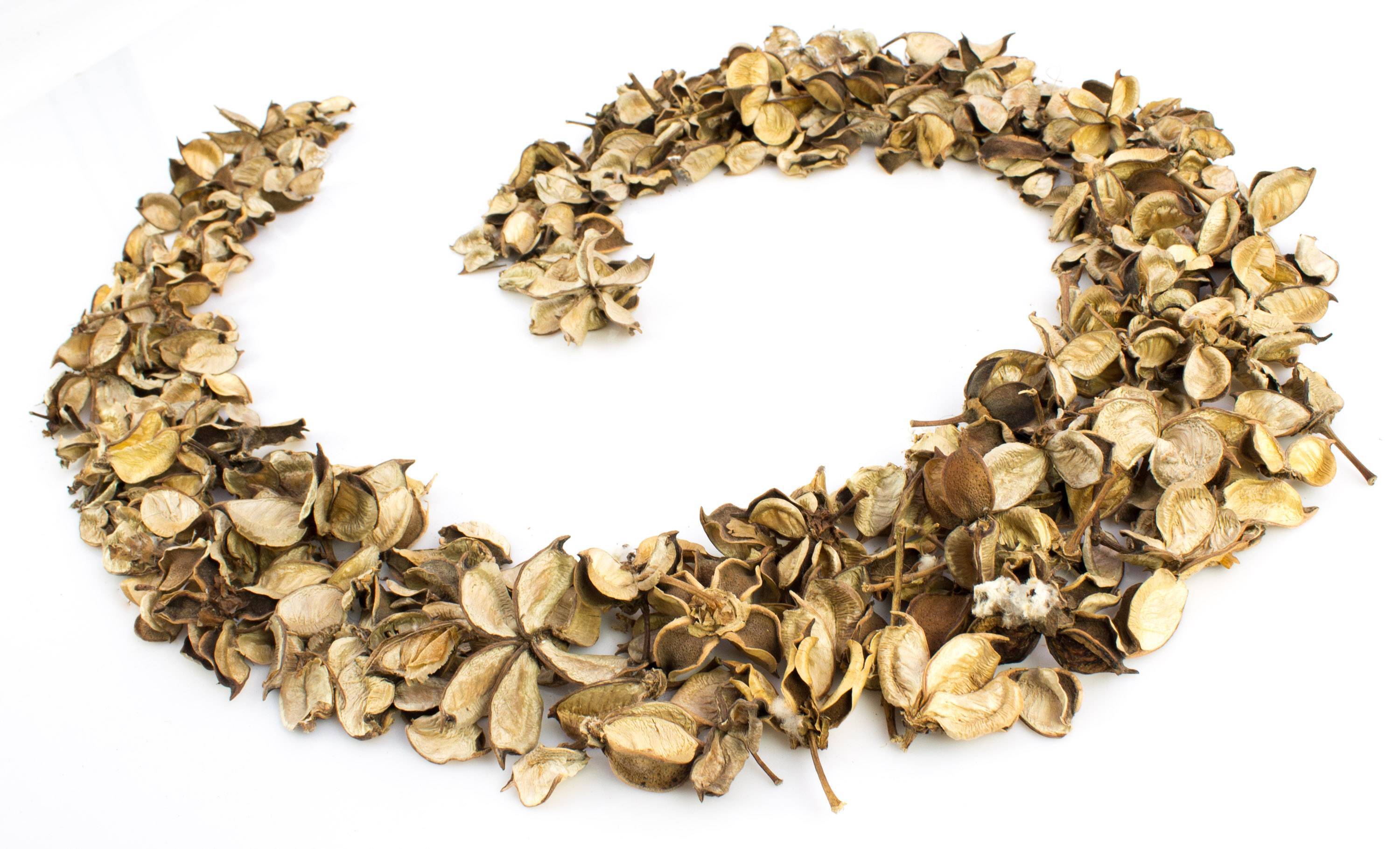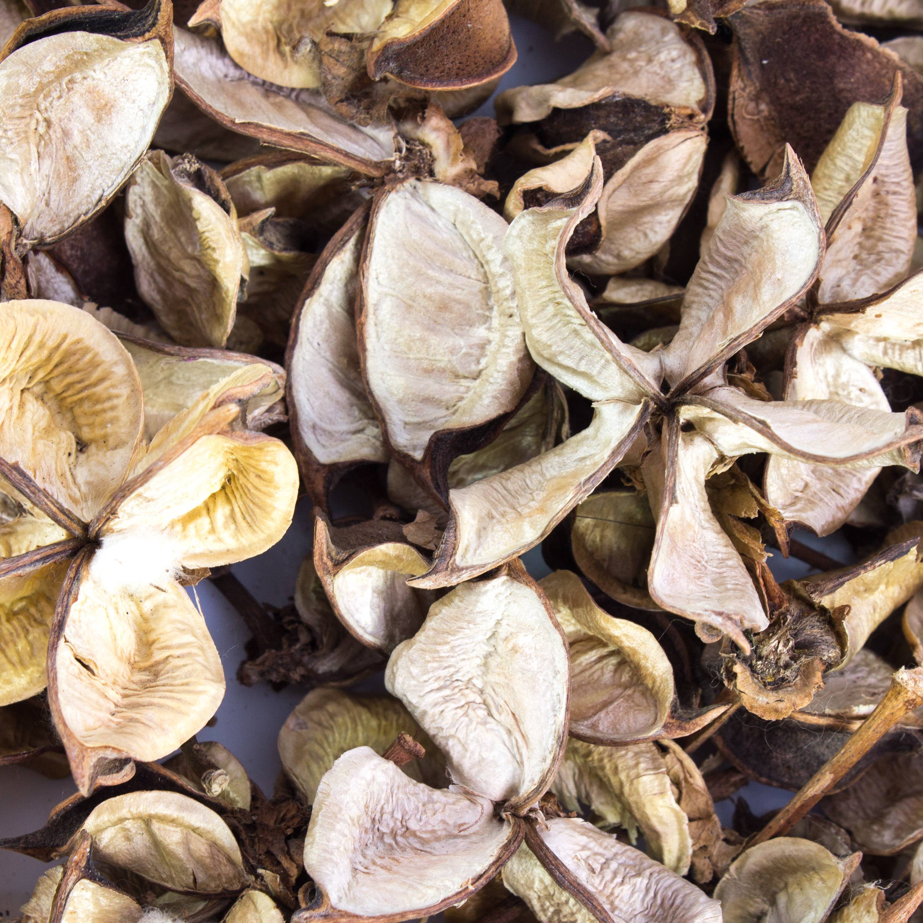 Secas cáscaras de linters de algodón con diferentes tamaños de aprox. 4 x 6 cm. Las vainas naturales poseen una superfície en color beige-marrón y son un básico y natural elemento decorativo.
