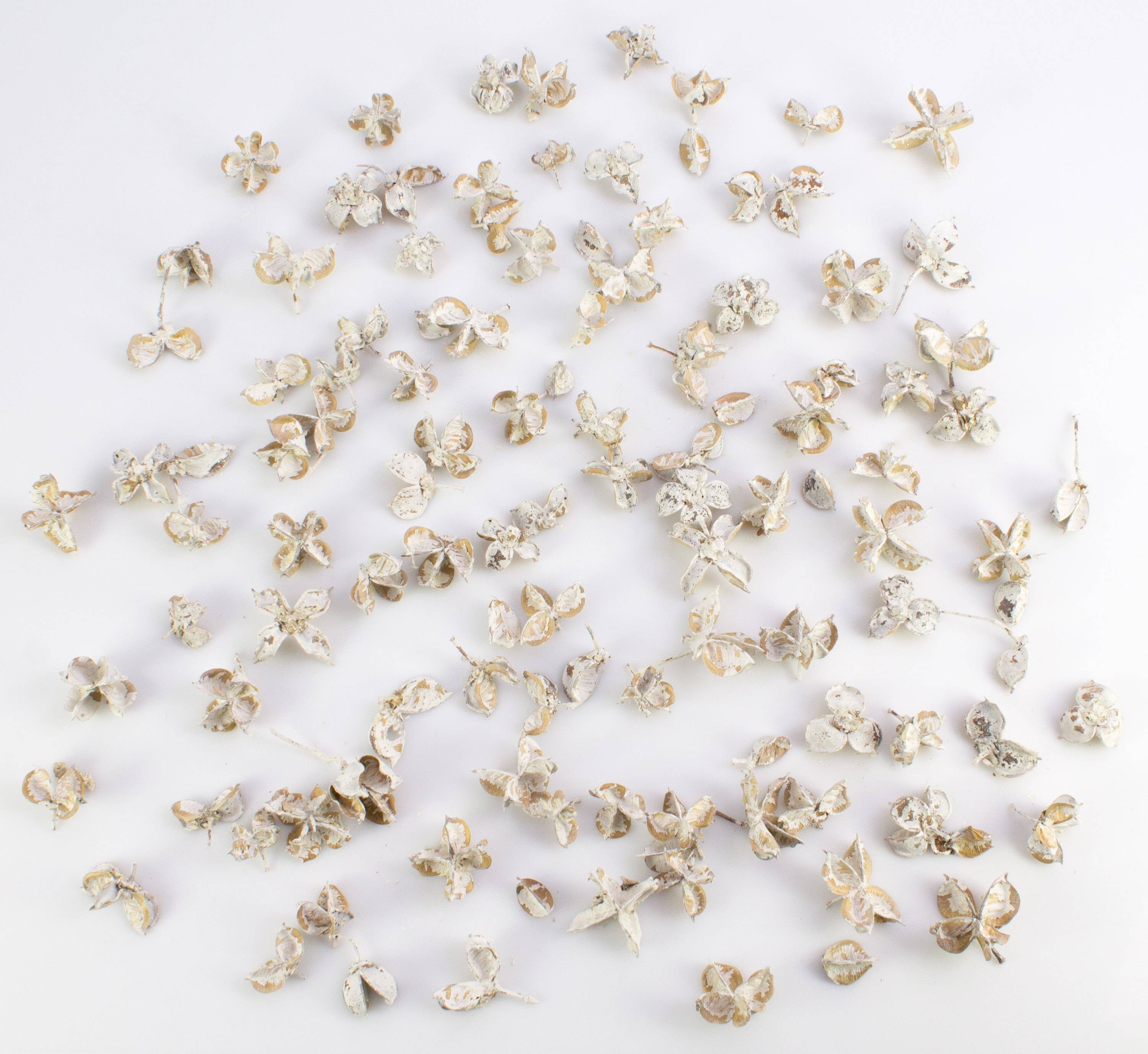 Secas cáscaras de linters de algodón con diferentes tamaños de aprox. 4 x 6 cm. Las vainas naturales poseen una superfície en color beige-marrón y son un básico y natural elemento decorativo.