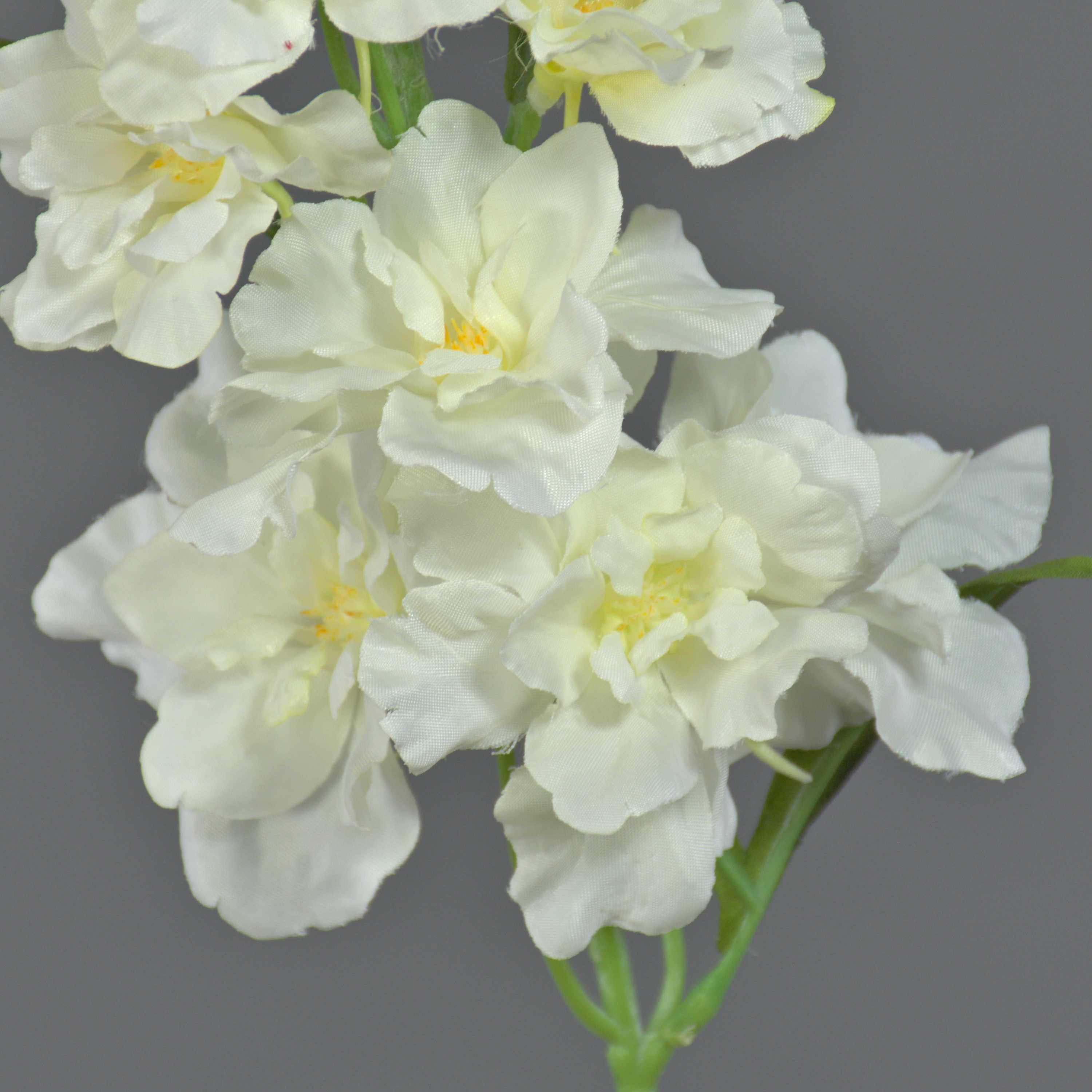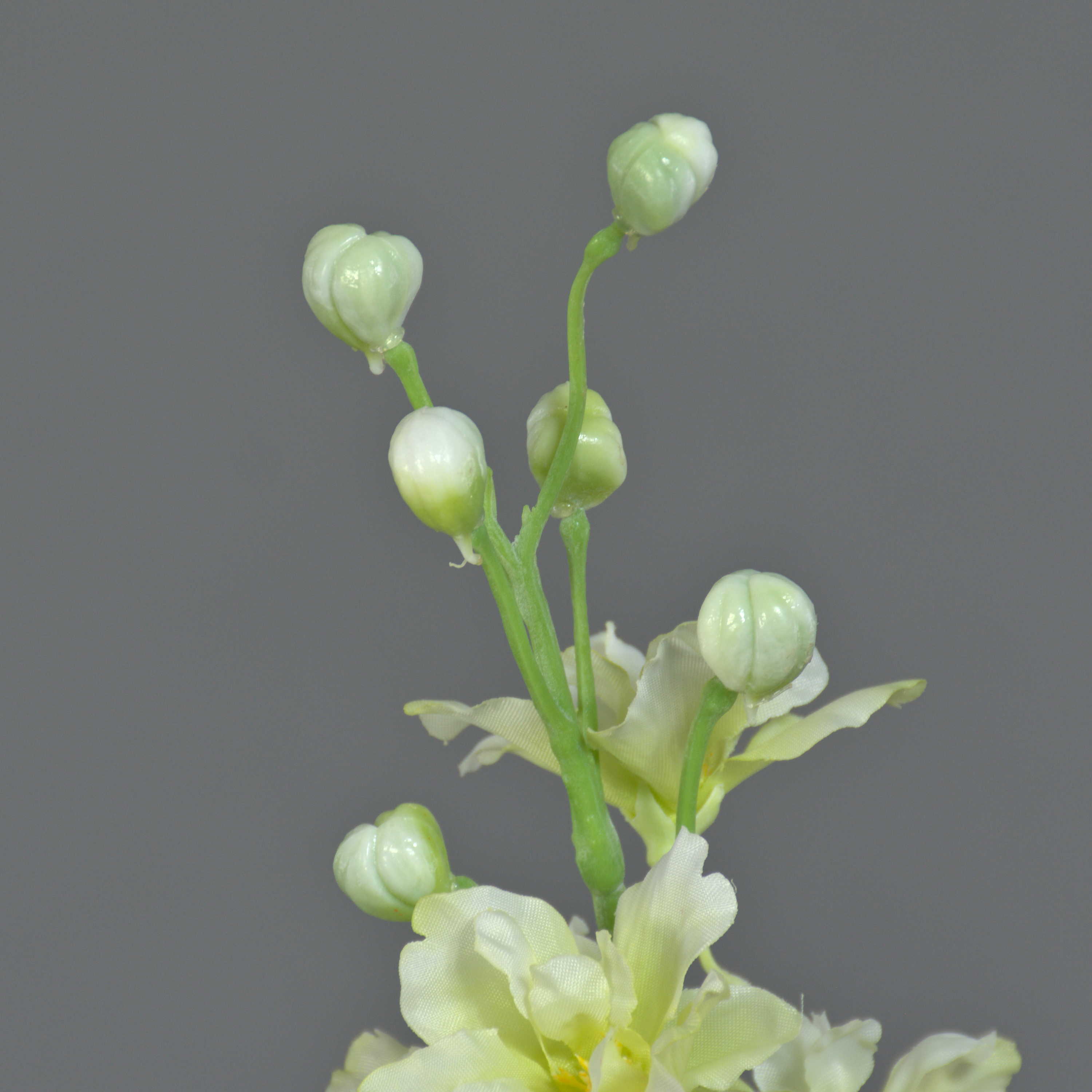 El delphinium artificial RASMINE en color blanco-amarillo tiene una longitud total de unos 60 cm y un diámetro de flor de unos 5-7 cm.