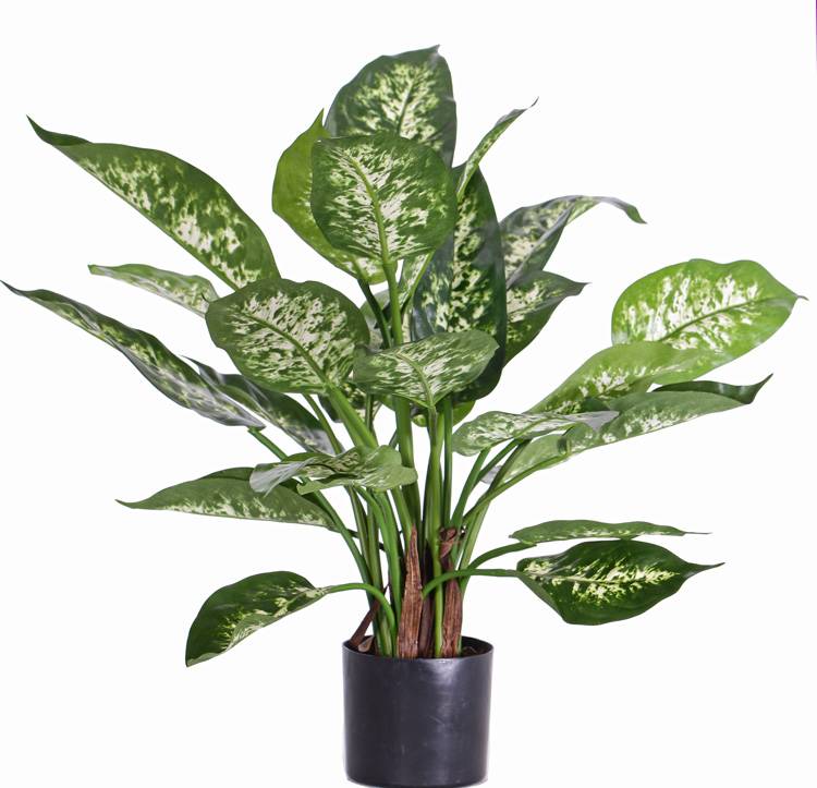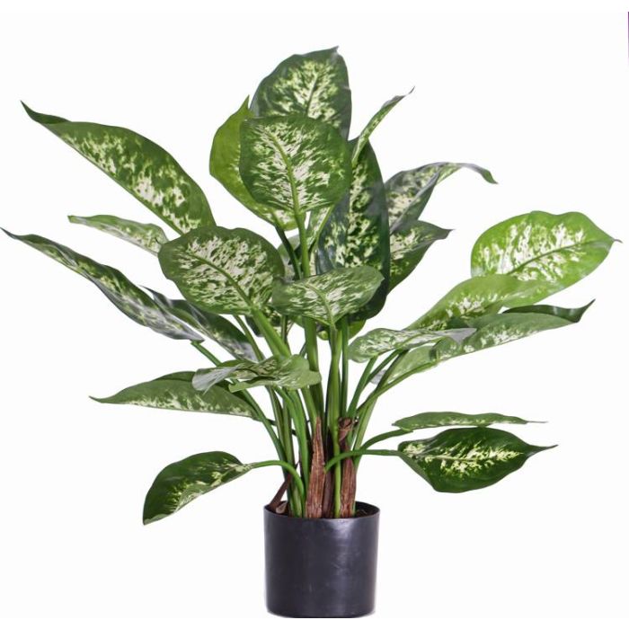 Planta tropical artificial Dieffenbachia DILLA. Con sus aproximadamente 26 hojas, la planta exótica de plástico tiene una altura total de aproximadamente 50 cm.