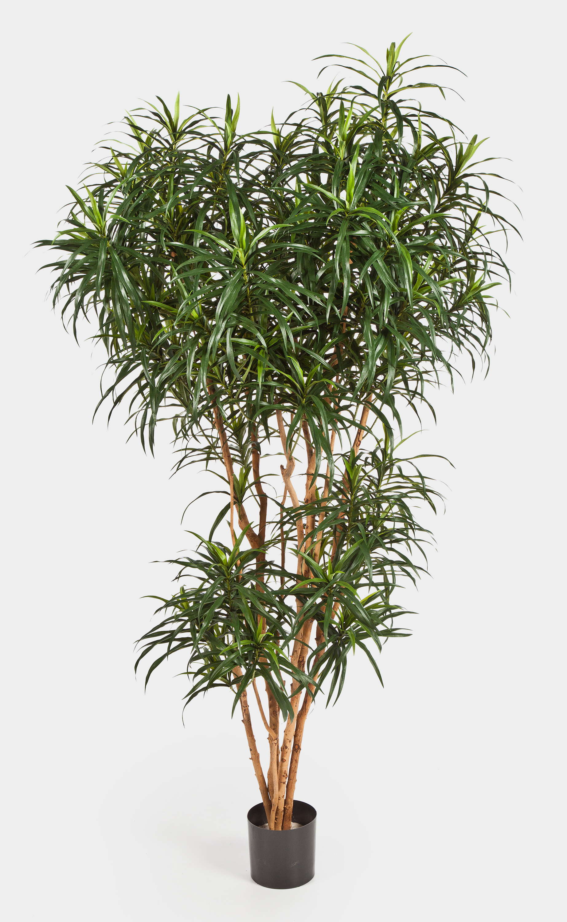 Bonita Drácena (Dracaena reflexa Anita) artificial en tiesto con una altura total aproximada de 210 cm. El árbol cuenta con aprox. 2350 hojas de textil que le otorgan una frondosa apariencia.