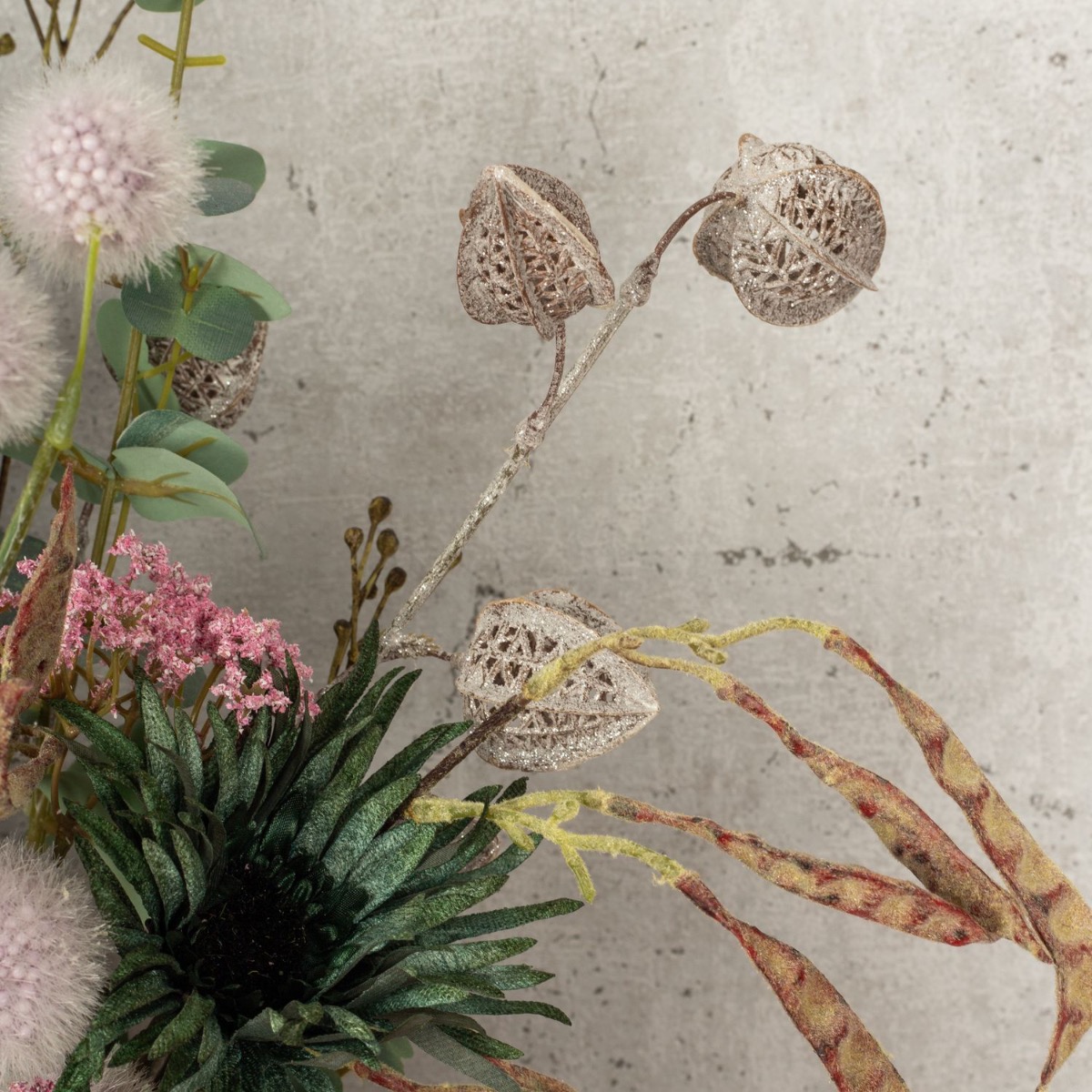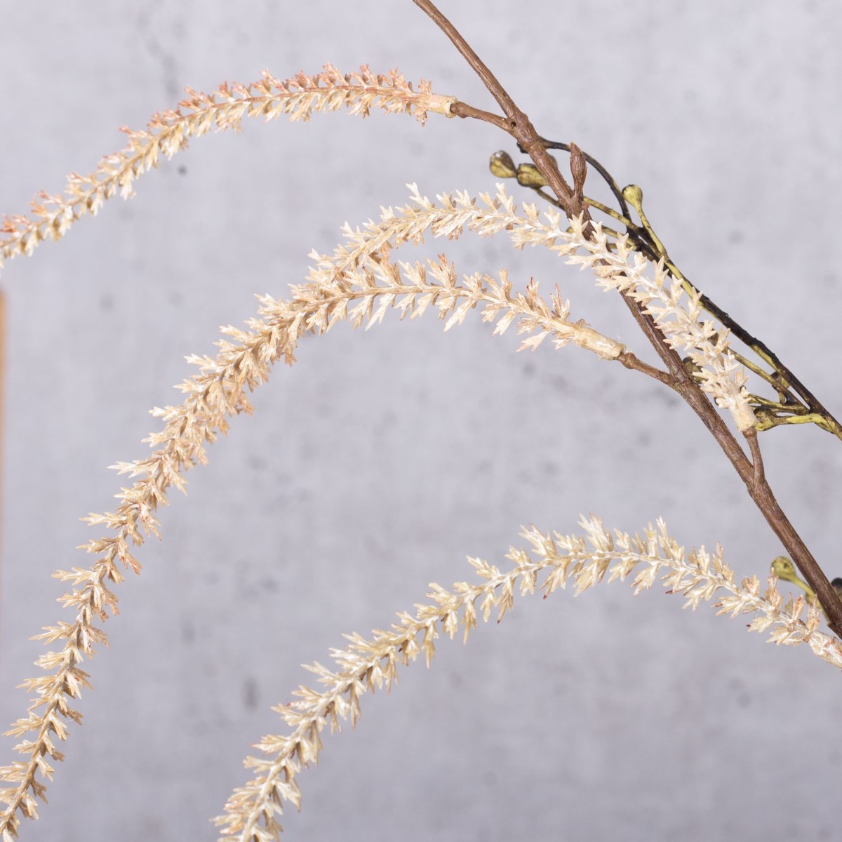 Consejo de diseño: Primero combina las ramas en un ramo y luego ajusta los tallos al tamaño del jarrón. Este look vive de su ligereza. El jarrón no debe estar demasiado lleno. Dobla las ramas individuales hacia abajo para crear un aspecto animado.