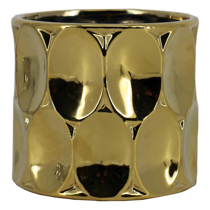 Elegante macetero de cerámica MANUKO, dorado brillante, 12,5 cm, Ø 13,4 cm