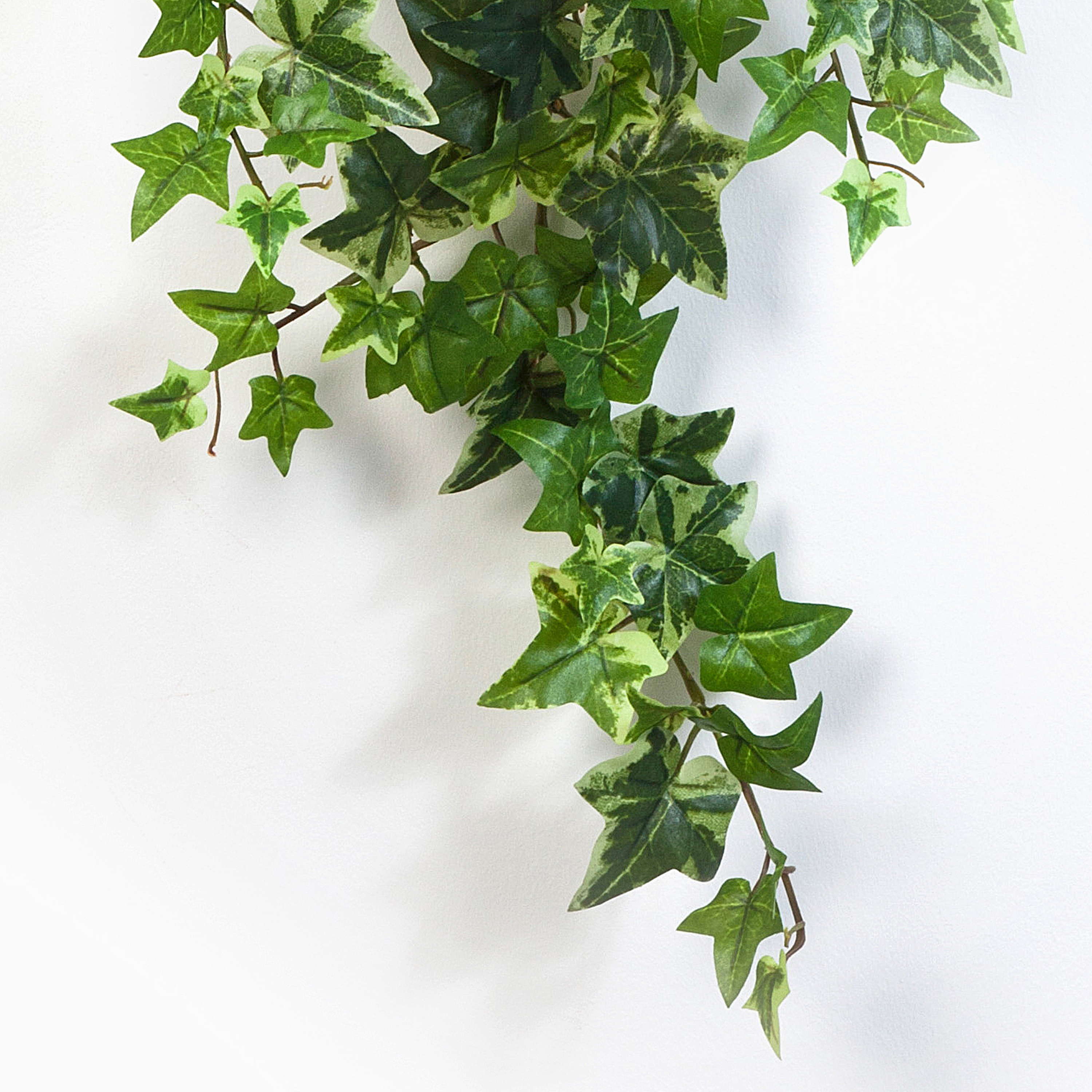 La planta de hiedra colgante LUKA tiene ramas verdes con hojas verdes y blancas y viene con una vara de ajuste de 5 cm de largo para una sencilla colocación en maceteros. Esta estilosa planta mide 110 cm, aproximadamente.