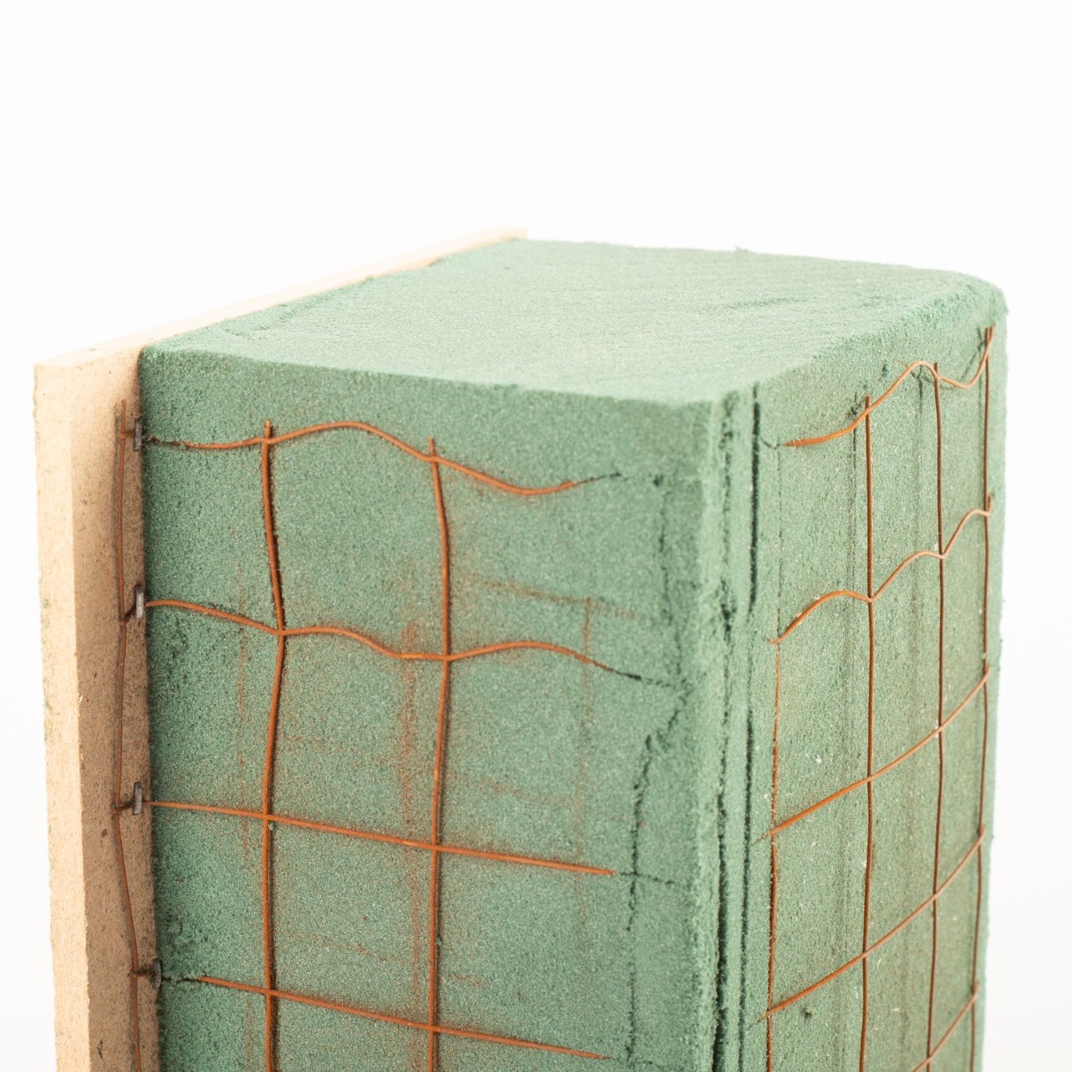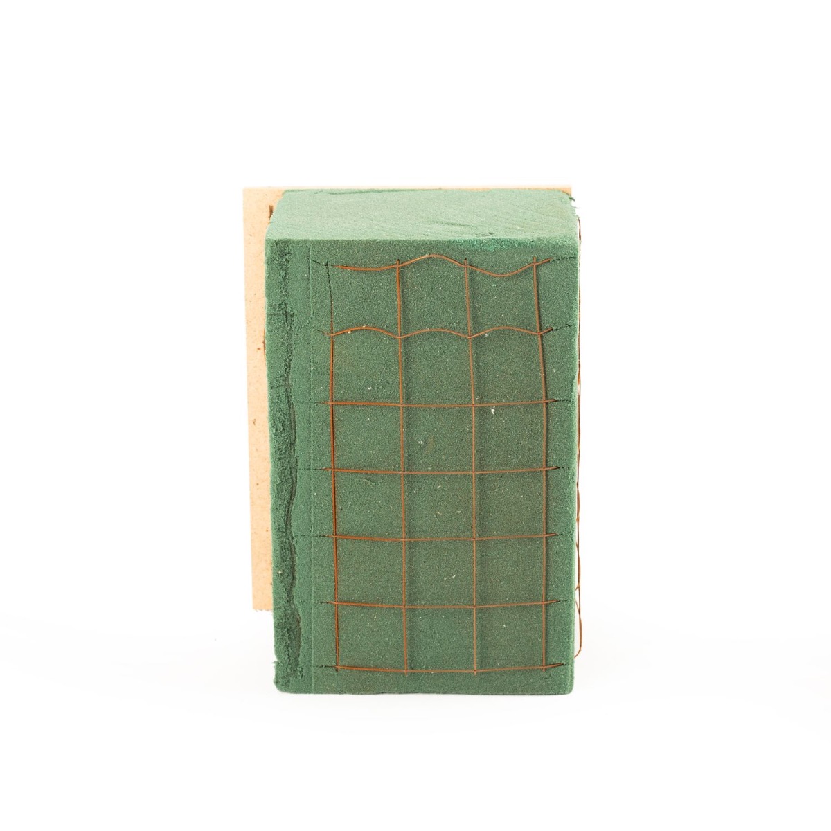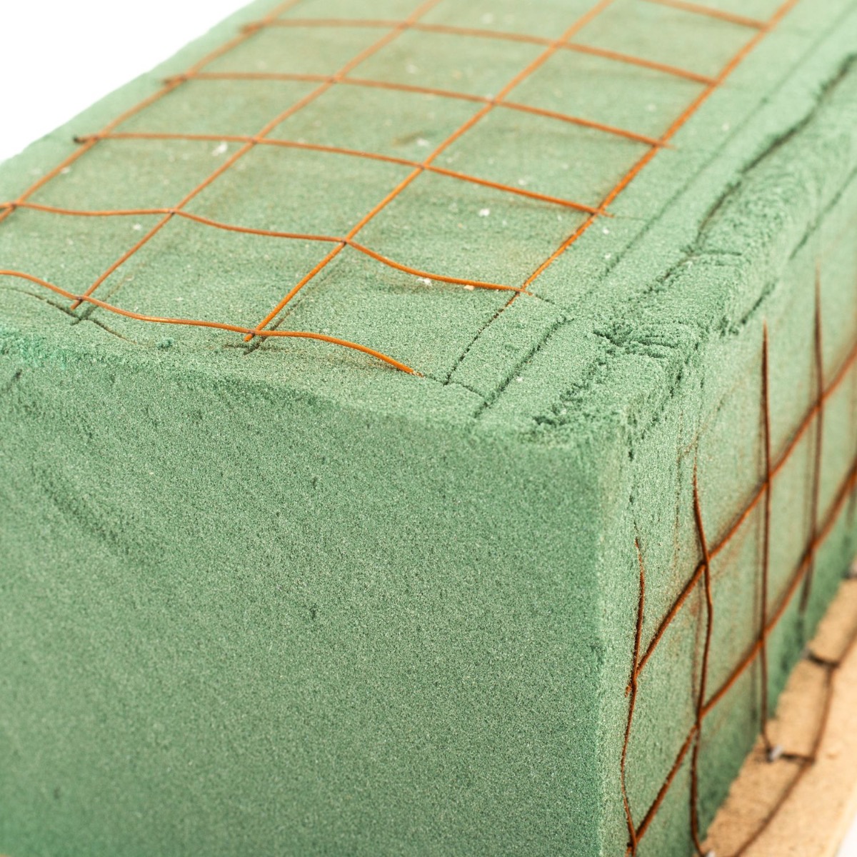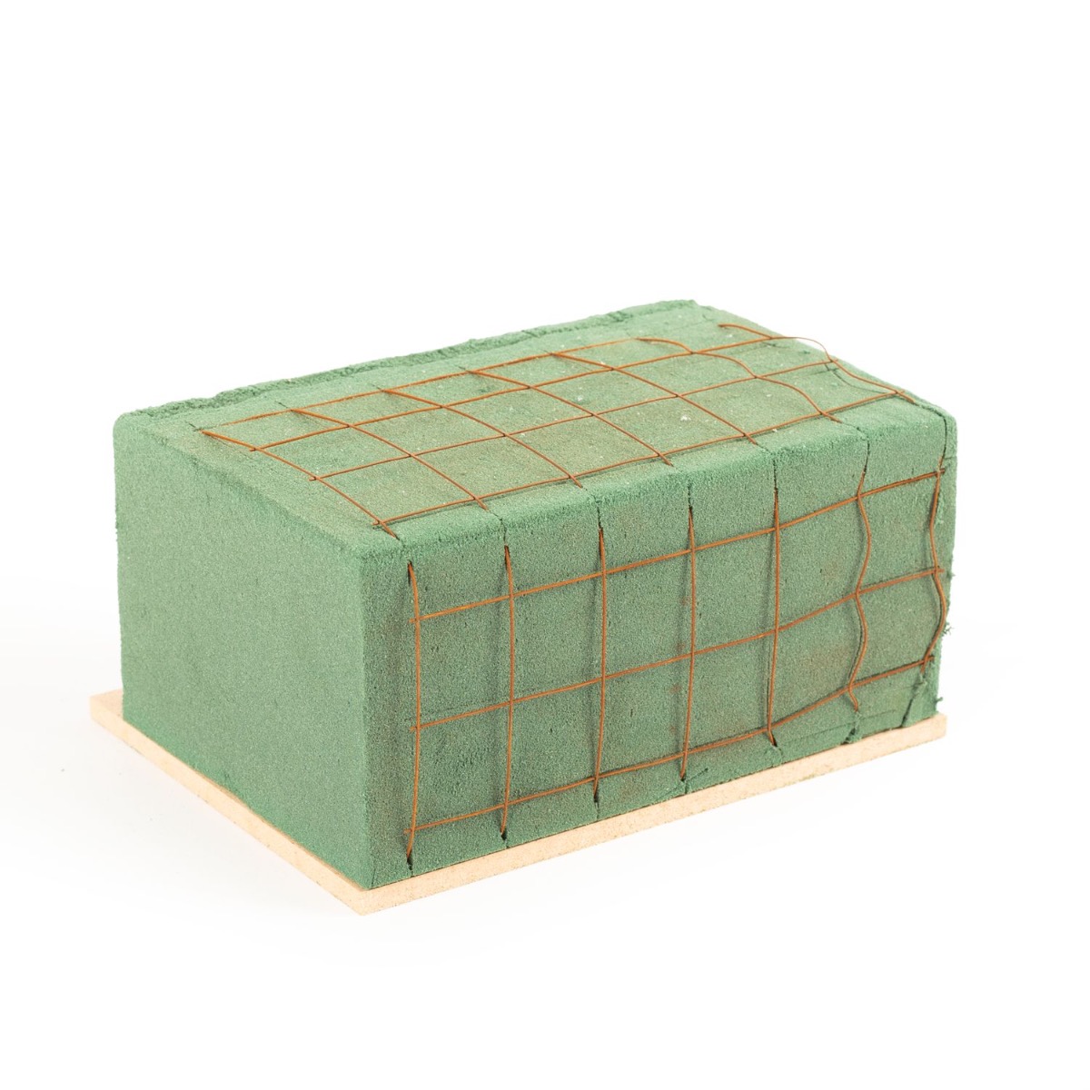 Espuma floral para adornos funerarios Ökodur VESDO con rejilla metálica, borde con asa, base de madera natural, verde, 17 x 11 x 8,5 cm