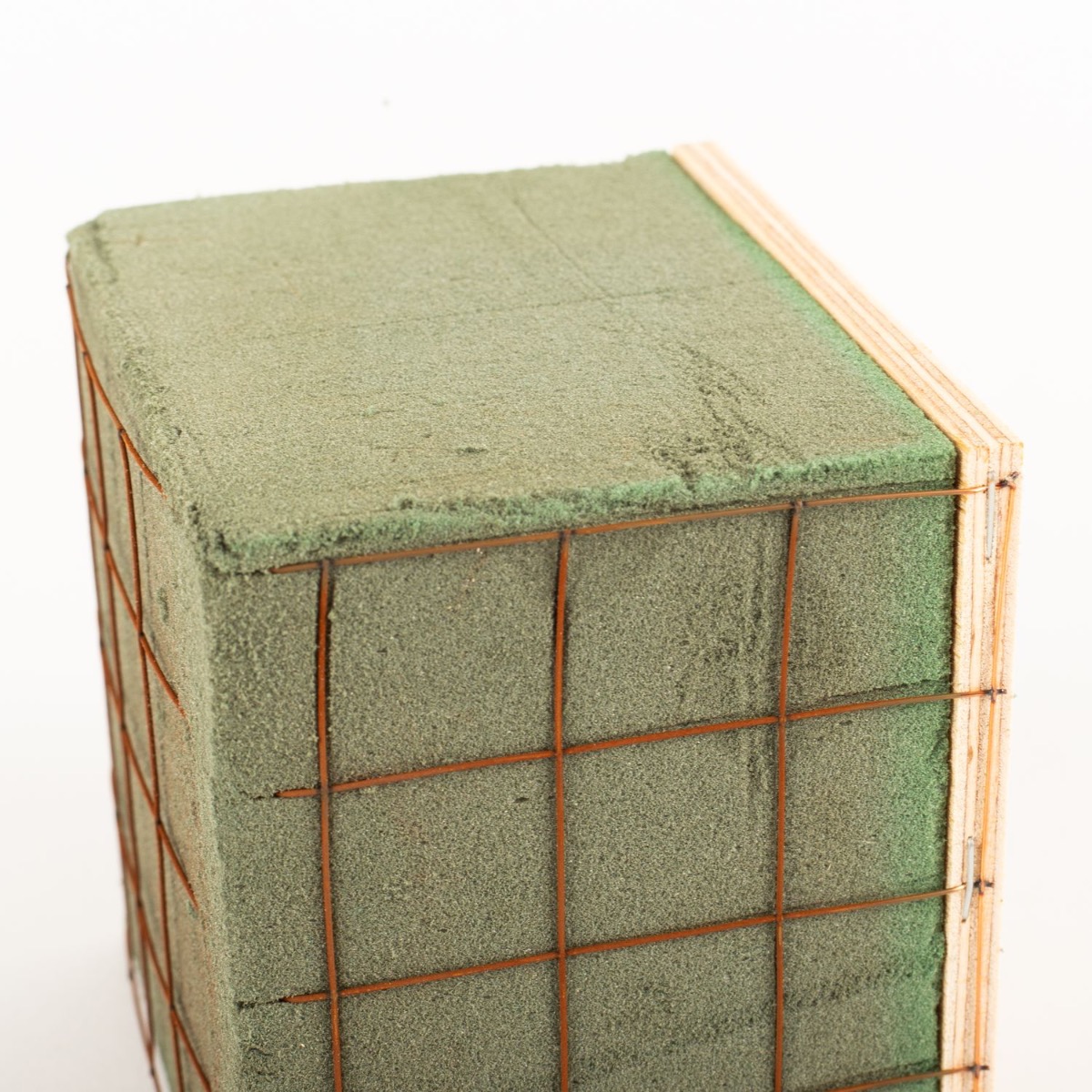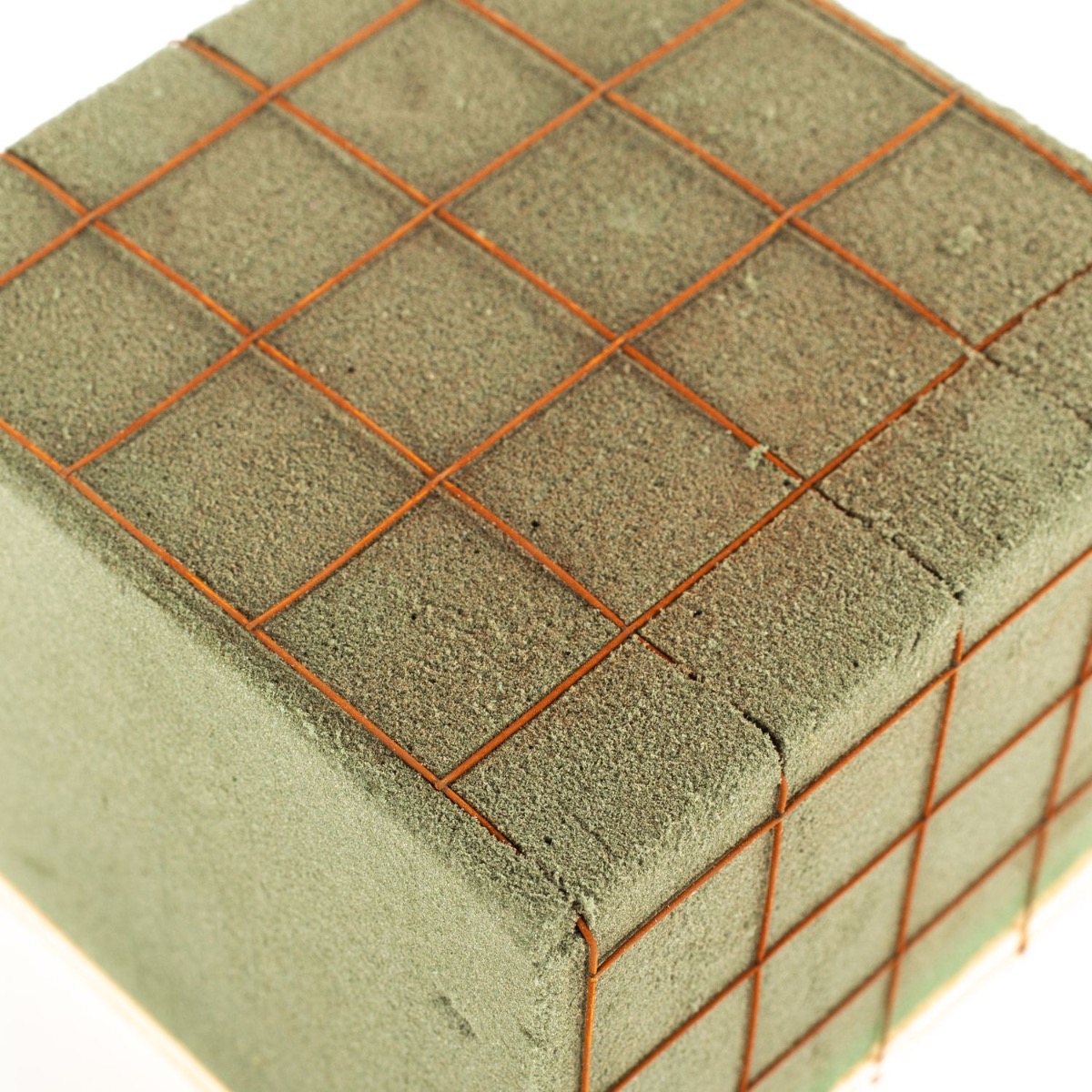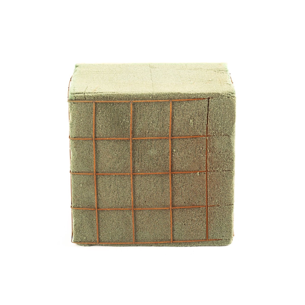 Espuma floral para floristería funeraria Ökodur SERLO con rejilla metálica y base de madera natural, verde, 11 x 11 x 9 cm