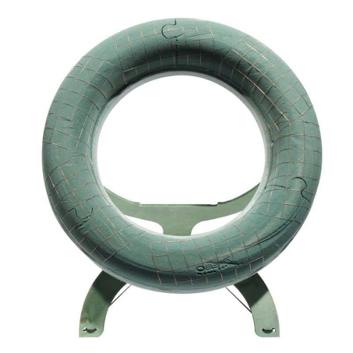 Espuma húmeda OASIS Anillo BLAINE, base de espuma rígida EcoBase, soporte de madera, rejilla de alambre, verde, Ø 52 cm