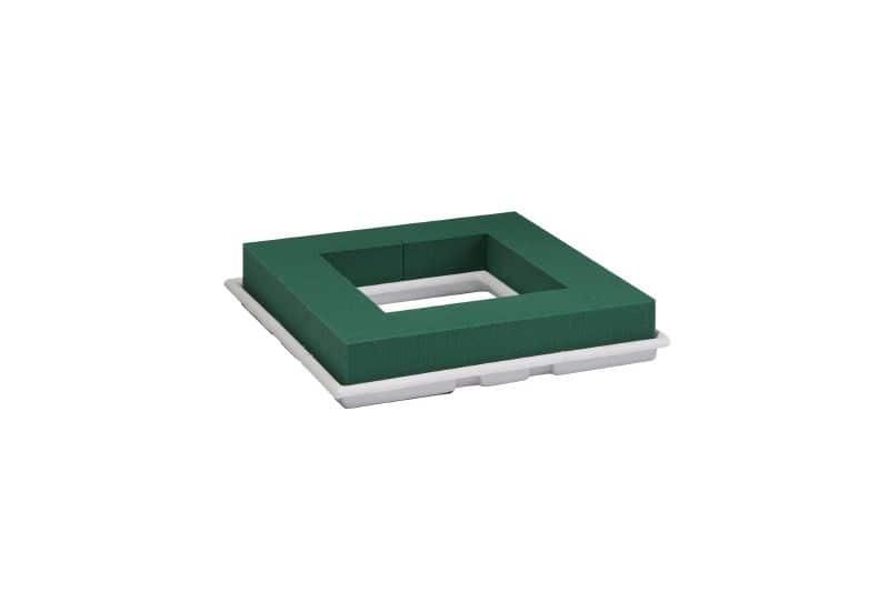 Espuma para arreglos florales OASIS cuadrada con corona abierta CARESSA, en bandeja de compuesto de papel, verde, 27 x 27 x 4,5 cm