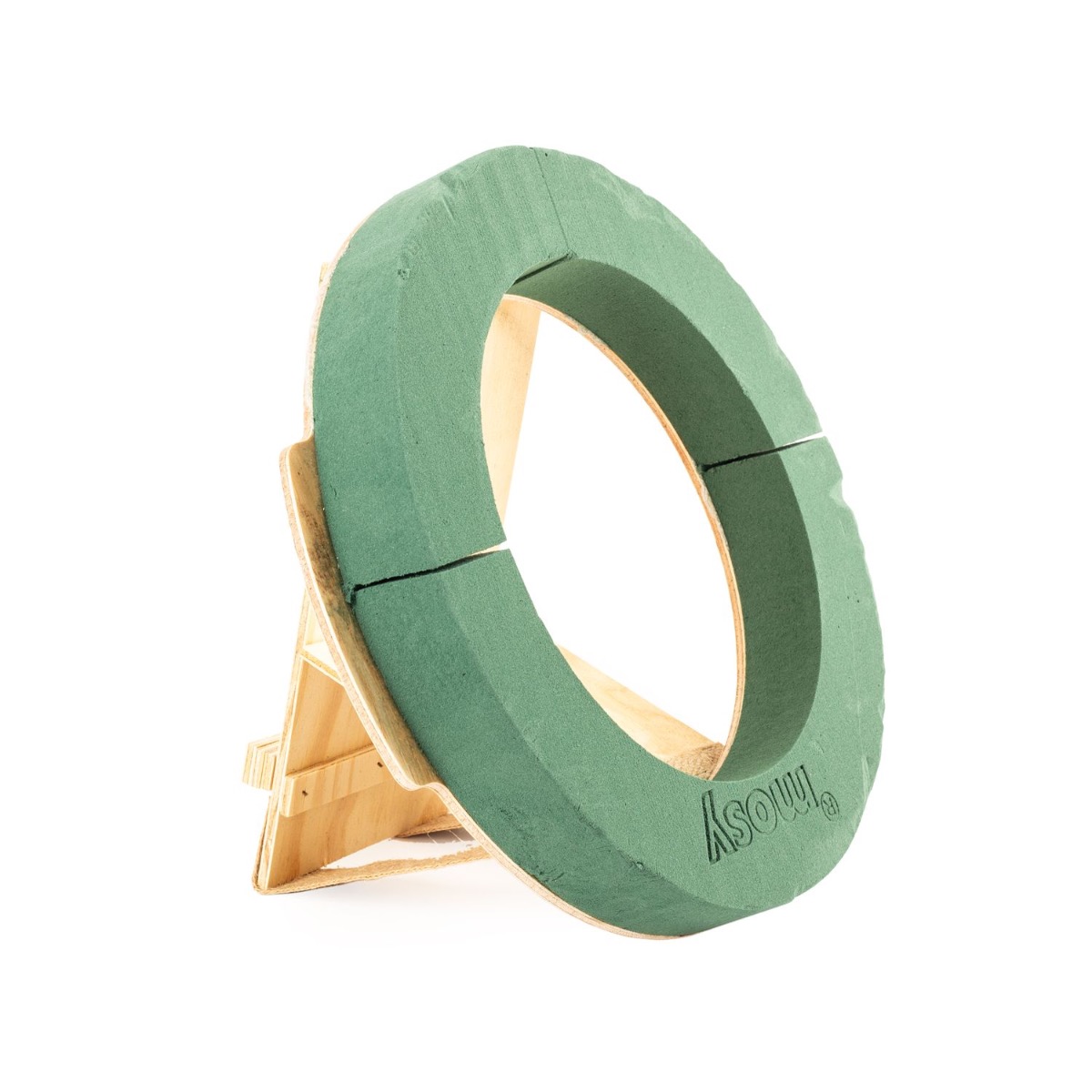 Espuma para flores artificiales Ökodur para coronas funerarias ARNELLE, base de madera natural, verde, 4,5 cm, Ø 36 cm