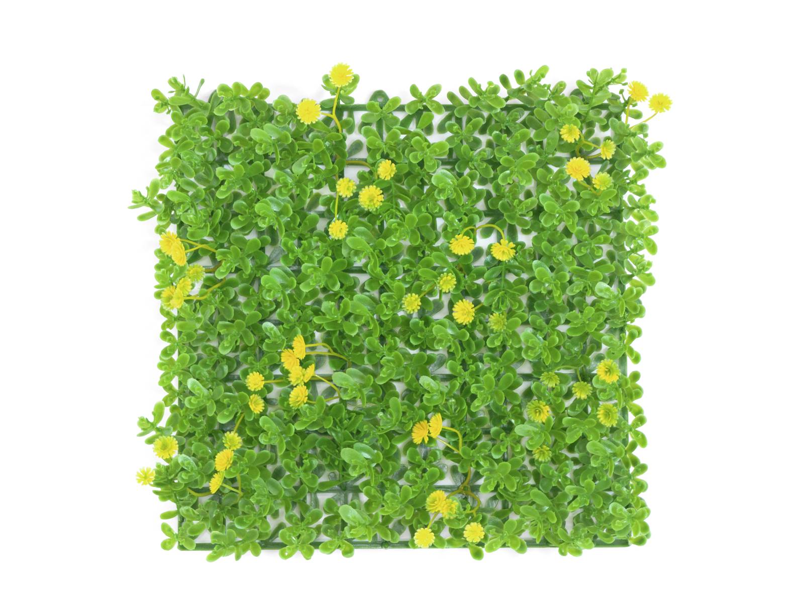 Estera de boj de plástico / seto KEIL con flores, verde-amarillo, 25x25cm