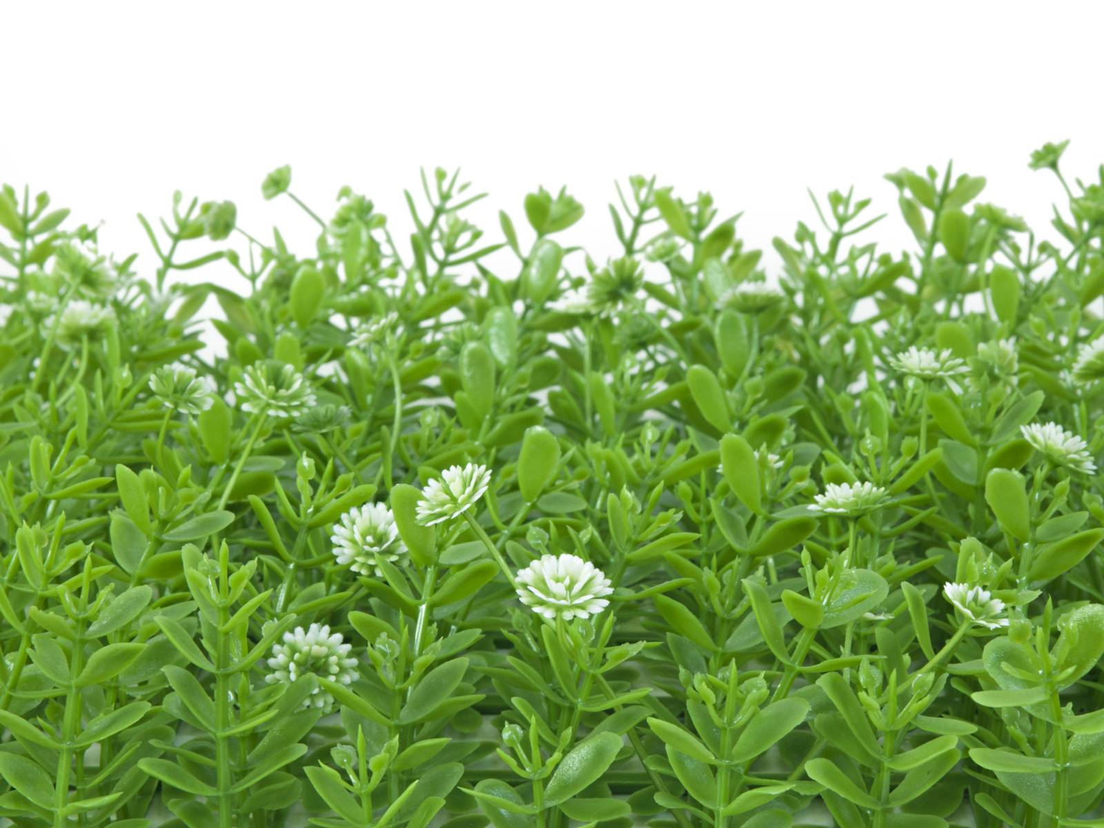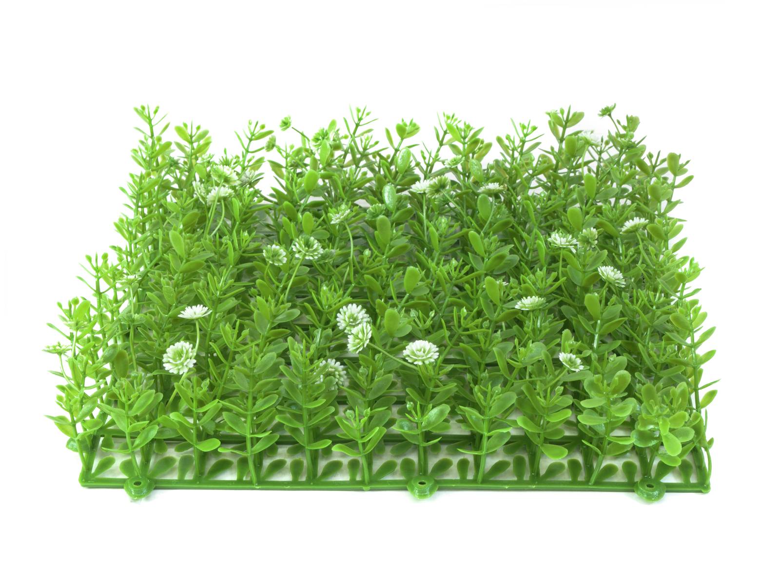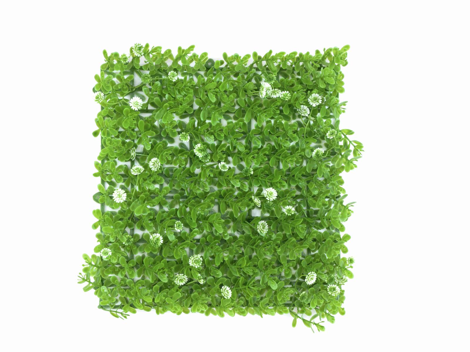 Estera de boj de plástico / seto KEIL con flores, verde-blanco, 25x25cm