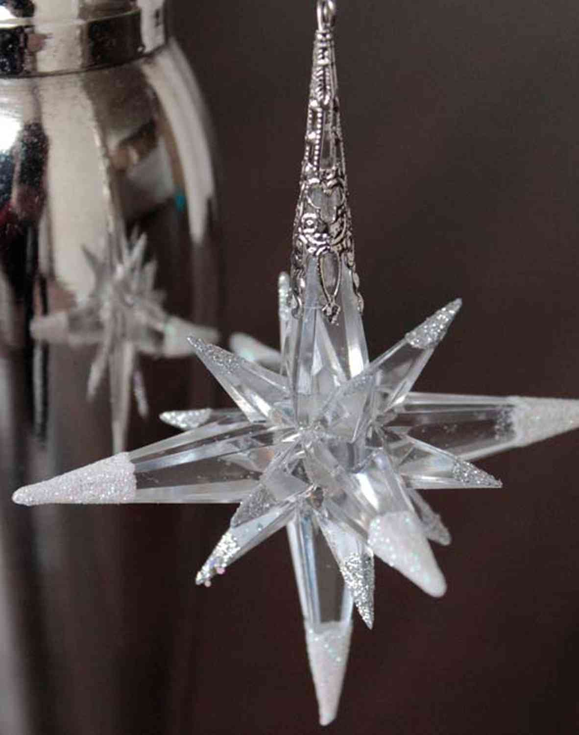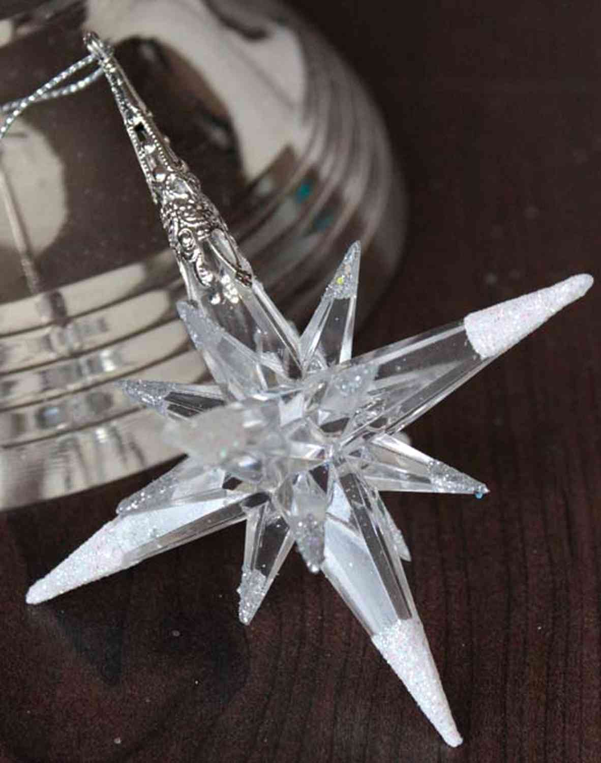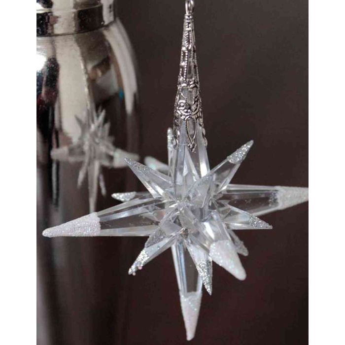 Estrella de decoración navideña MABOU, colgante, purpurina, blanco-plata, 10cm, Ø10cm