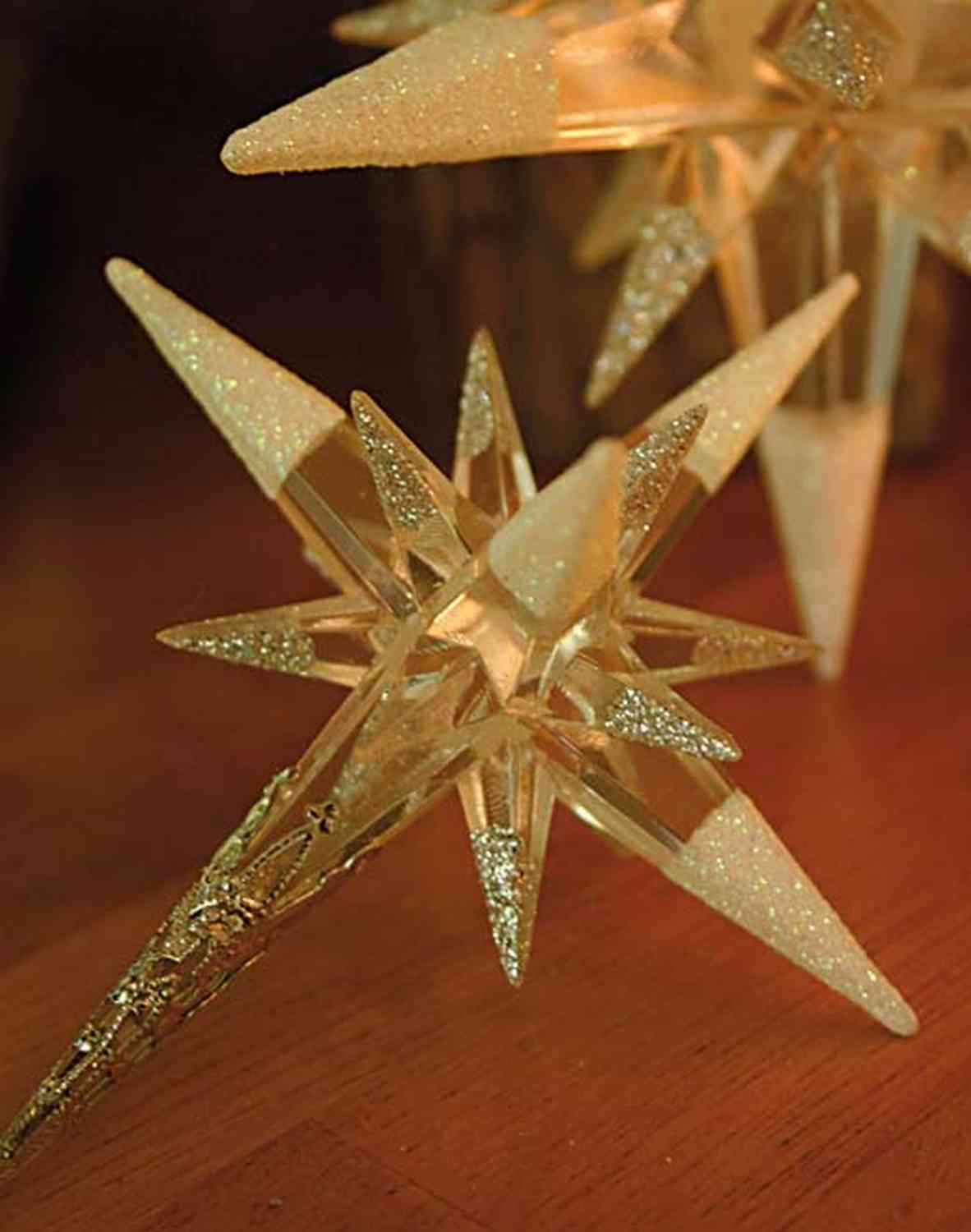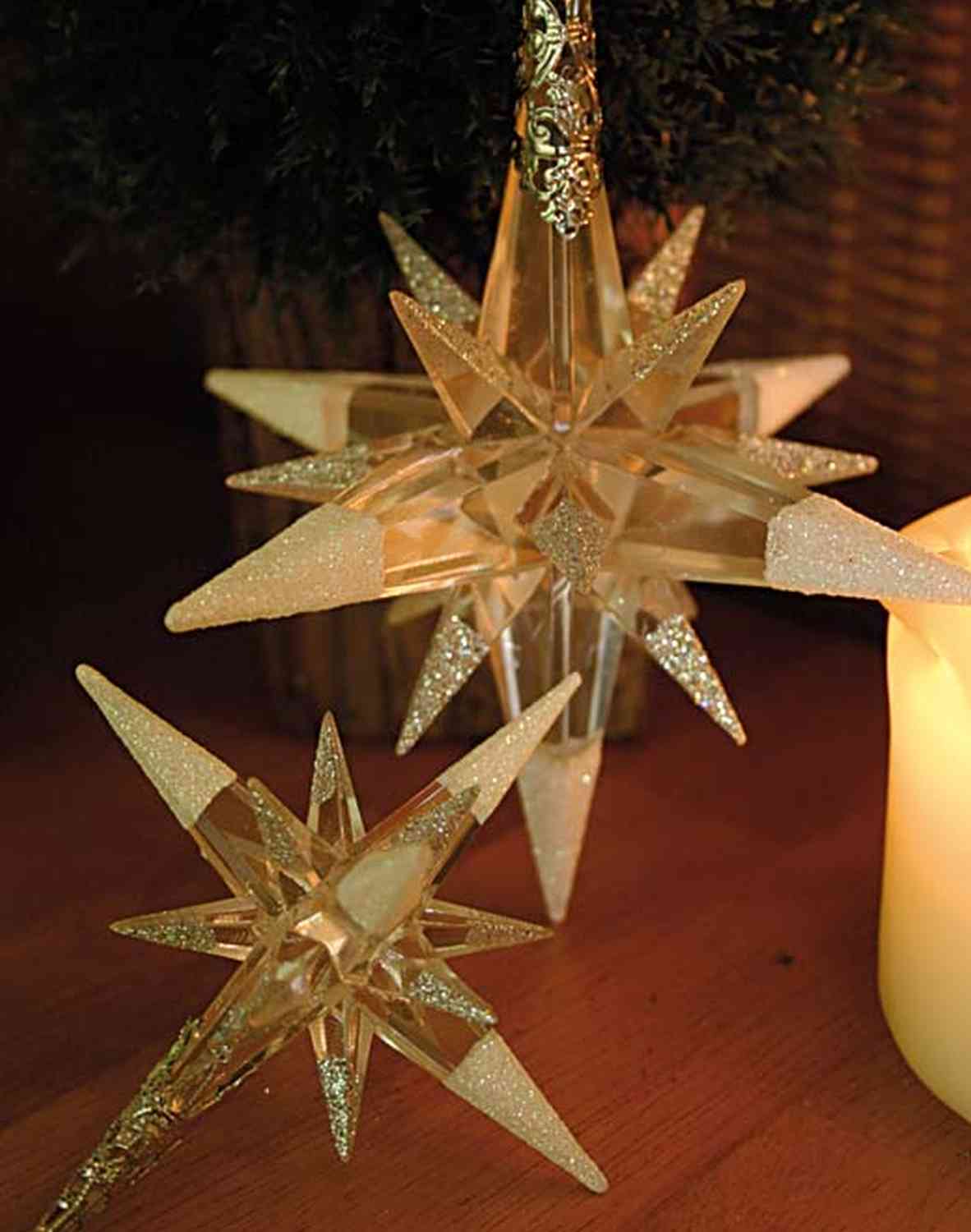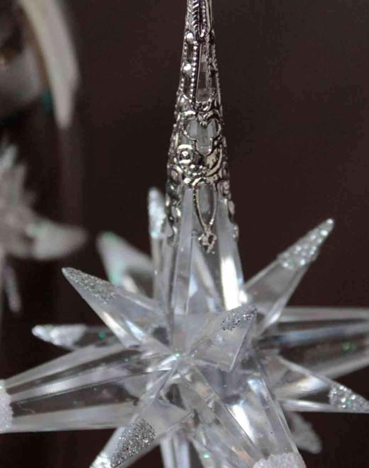 Estrella de decoración navideña MABOU, colgante, purpurina, blanco-plata, 10cm, Ø10cm