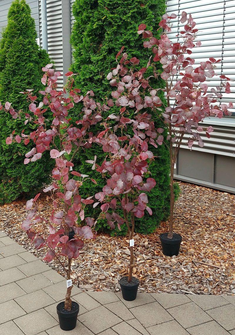 Eucalipto artificial WISCHERA, frutos, tronco artificial, maceta decorativa, rojo burdeos-gris, 120 cm