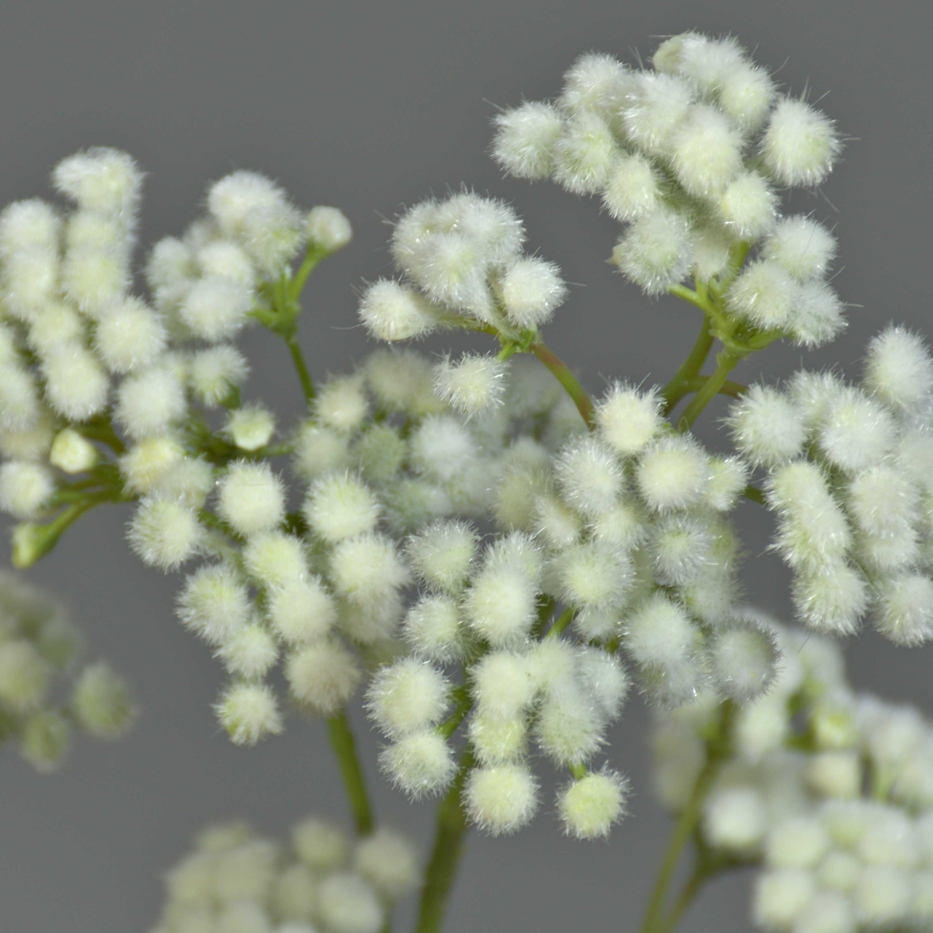 La rama con flores artificiales KORALIA de color crema posee una dimensión total de aprox. 80 cm y se encuentra unida a un tallo.