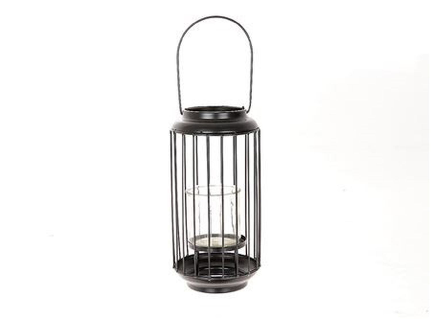 Farol MUIRANDA con asa, metal, inserto de cristal, negro, 28,5 cm, Ø 9,5 cm
