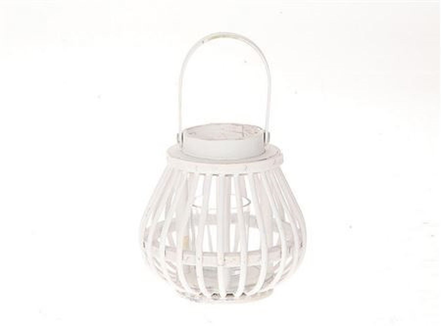Farolillo CHARITHRA con asa, madera, inserto de cristal, blanco, 15 cm, Ø 15,5 cm
