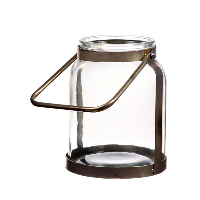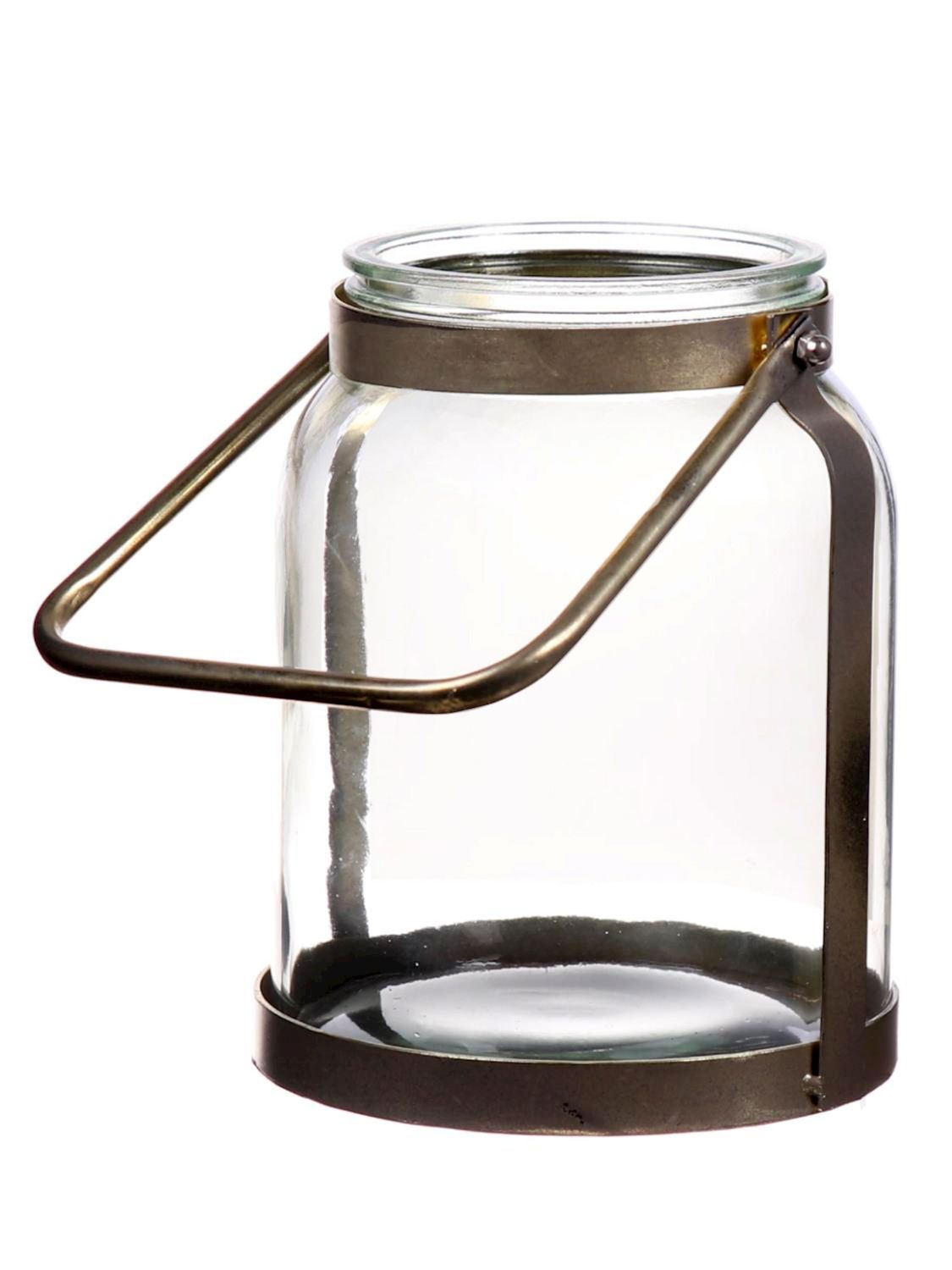 Farolillo de cristal SUBRA con agarradera, metal, transparente, oro, 21,5cm, 17cm