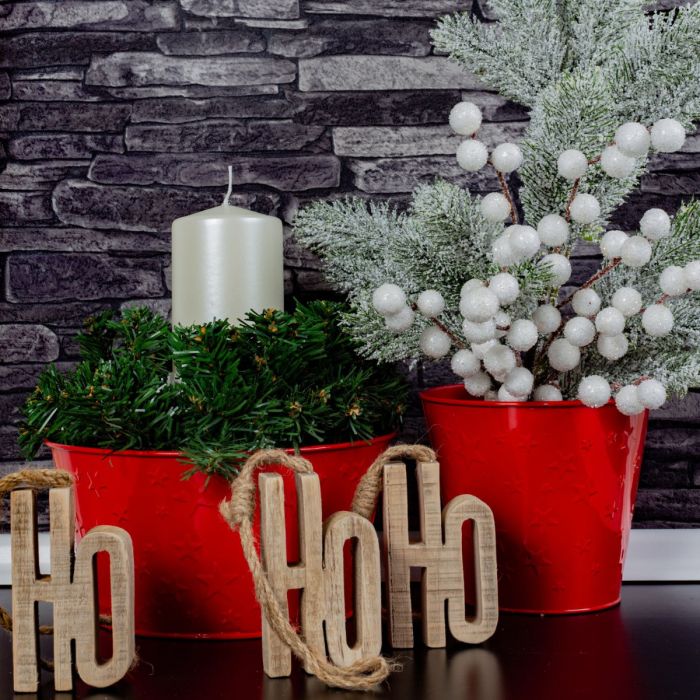 ¡Una Navidad brillante! El cuenco rojo y el jarrón de cerámica roja encajan perfectamente en la época navideña. Coloque la corona sobre el cuenco, ajústela un poco, coloque el candelabro con la vela en el centro y ya tiene lista una parte de su decoración. Puede llenar el jarrón con el granulado que prefiera, donde se mantendrán bien sujetas las flores de allium y la rama de pino. Por supuesto, también puede añadir figuras decorativas y bolitas. ¡Compre el look!