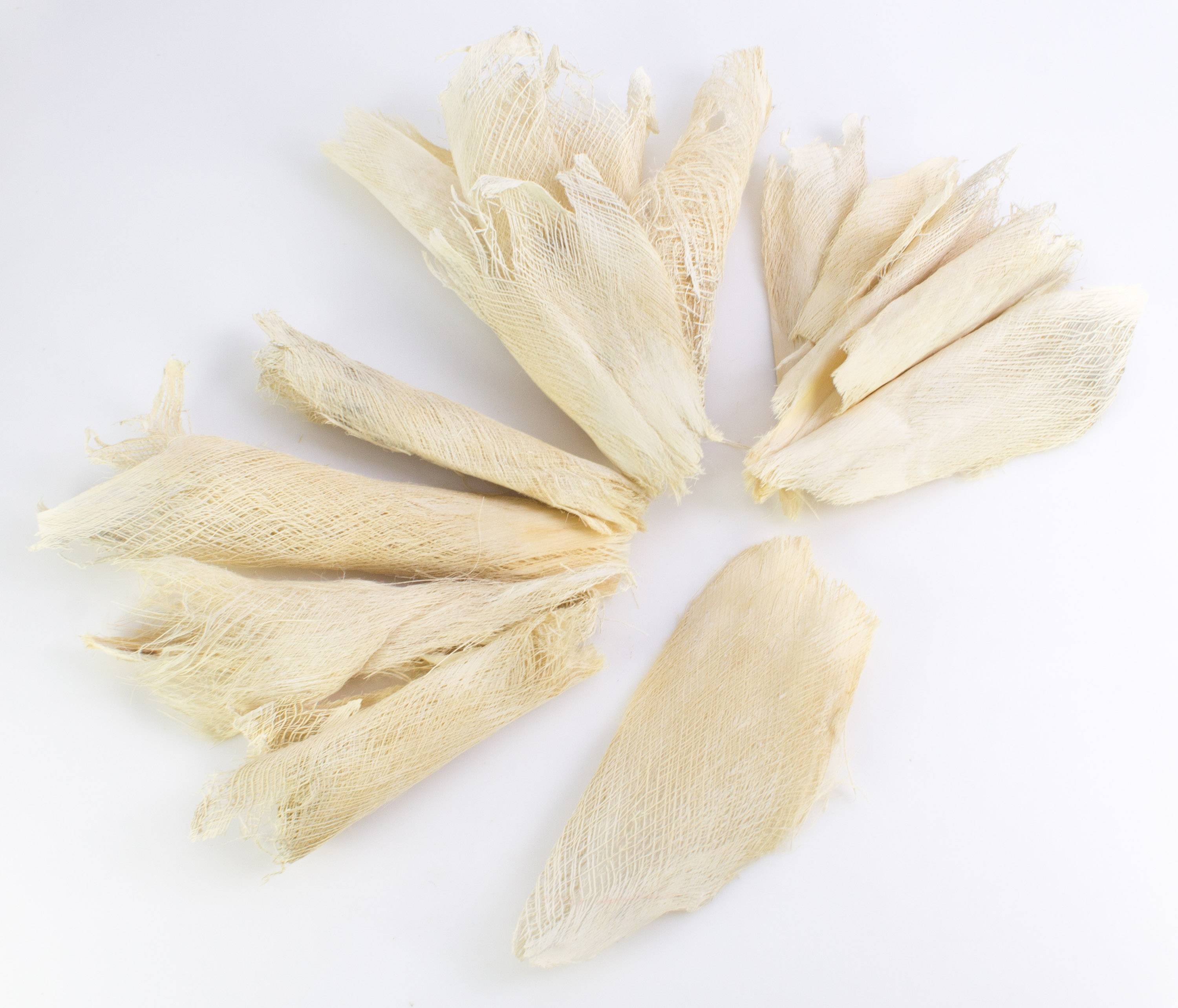 Trozos secos de material de fibra de palmera en diferentes tamaños de aprox. 15 x 15 cm hasta 30 x 40 cm. Los trozos de fibra en color crema-blanco componen una base natural ideal para nuevos troncos de palmera.