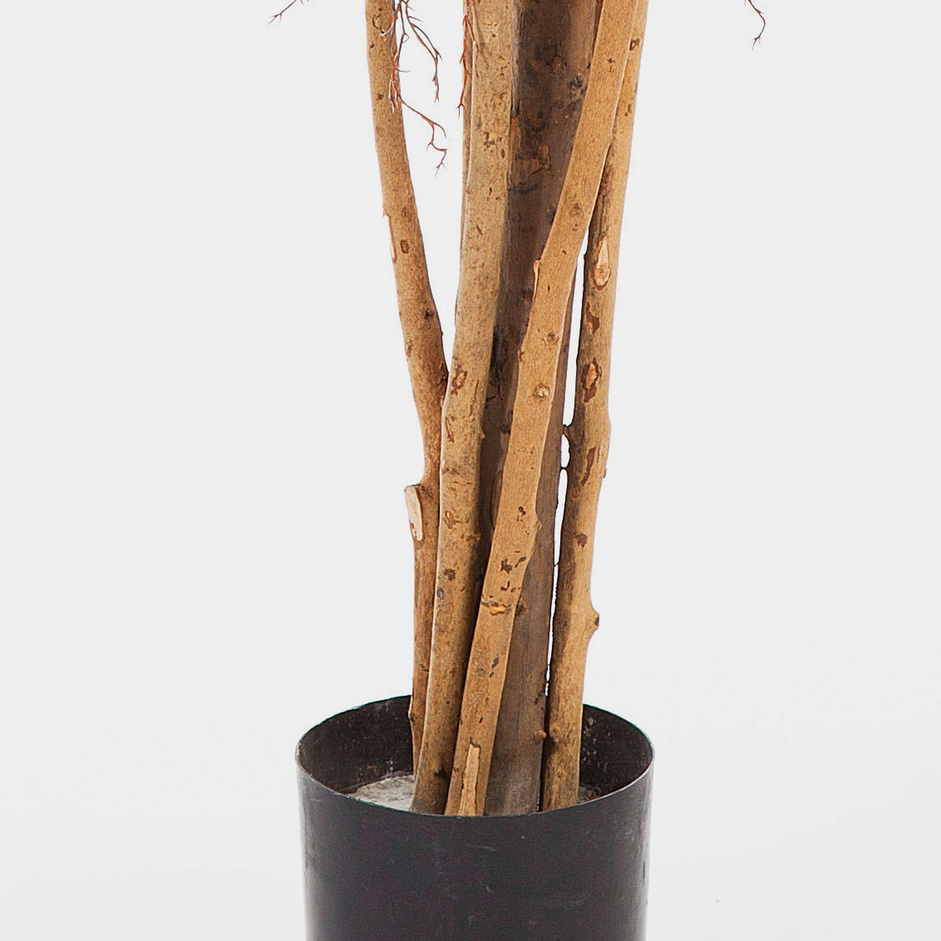 El Ficus AURIOL llama la atención por sus troncos reales de color marrón oscuro con troncos más claros y finos alrededor, así como por su frondosa copa y sus raíces al aire. El tamaño total de la planta artificial es de 150 cm.