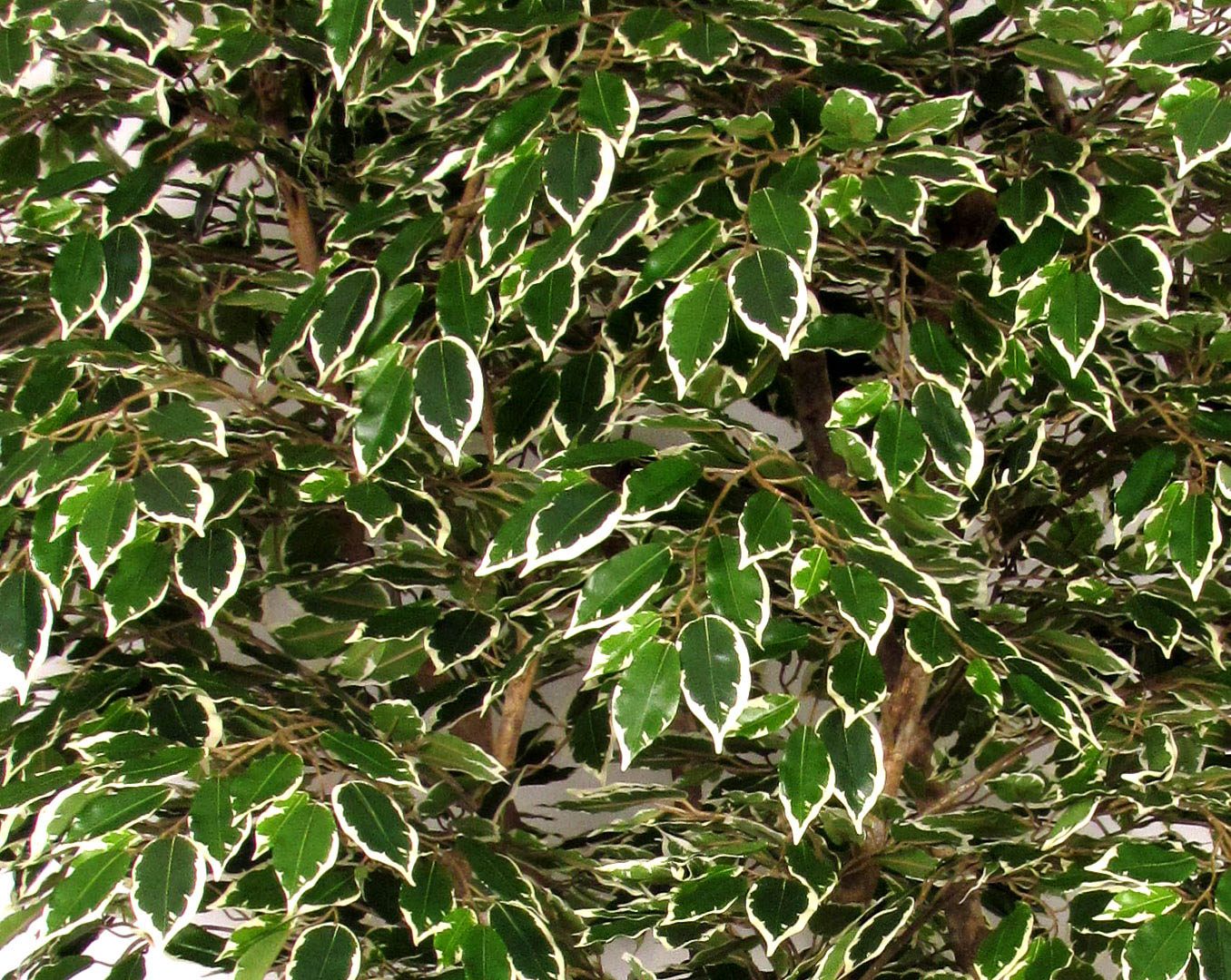 Ficus benjamina artificial NEVANTA, troncos reales, verde-blanco, 225 cm - Fabricado en Italia