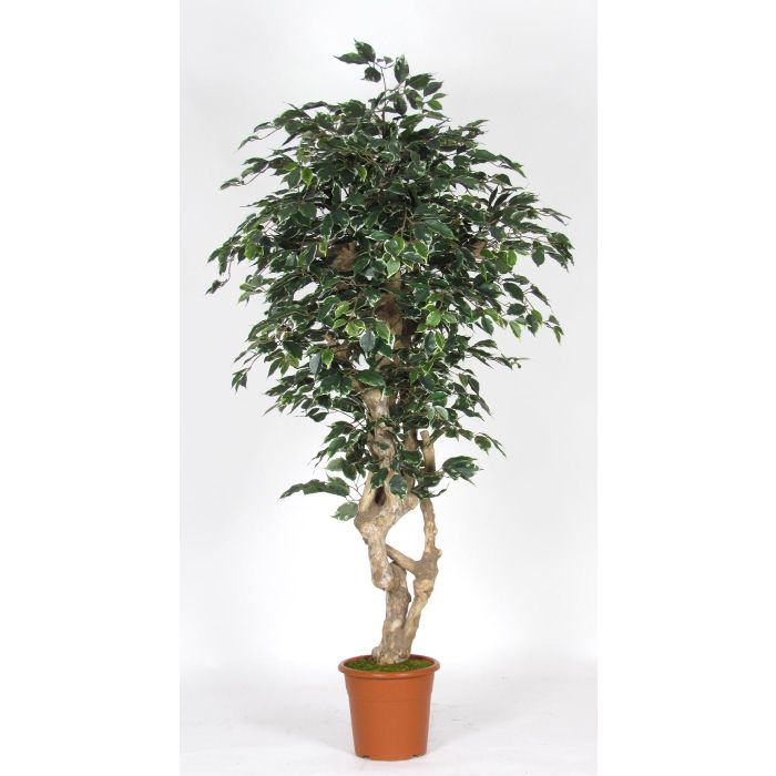Ficus benjamina artificial SILENO, tronco real, verde-blanco, 200 cm - Fabricado en Italia