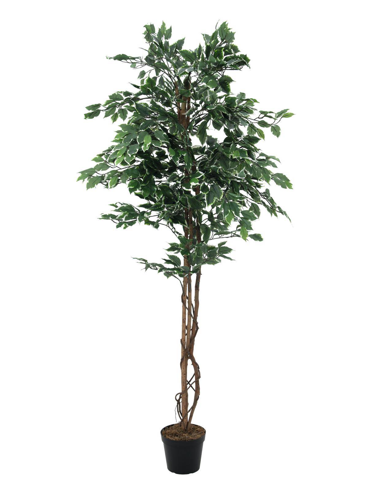 Ficus benjamina plástico JACOPO, tronco real, verde-blanco, 180cm