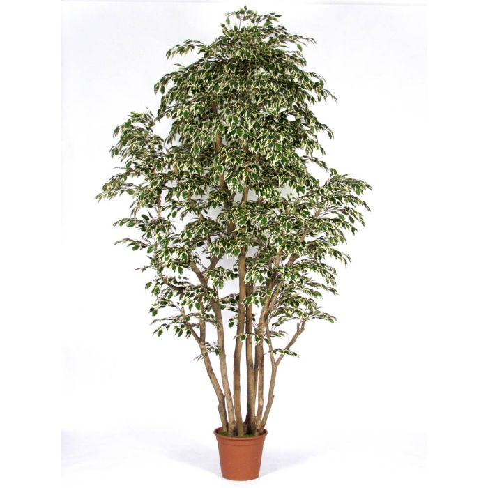 Ficus Benjamini artificial MIMITIGO, troncos reales, verde-blanco, 200 cm - Fabricado en Italia