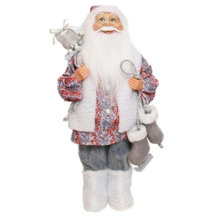 Figura de Papá Noel ABENZIO, patines de hielo, saco de regalos, blanco-gris-rojo, 22x14x45cm