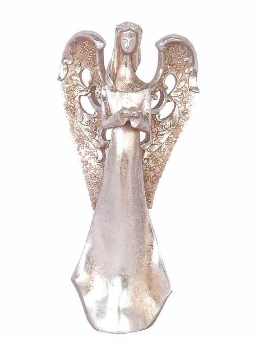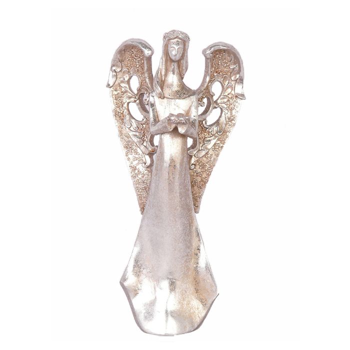 Figurita de ángel PINTA, con flor, plata-cobre, 30cm