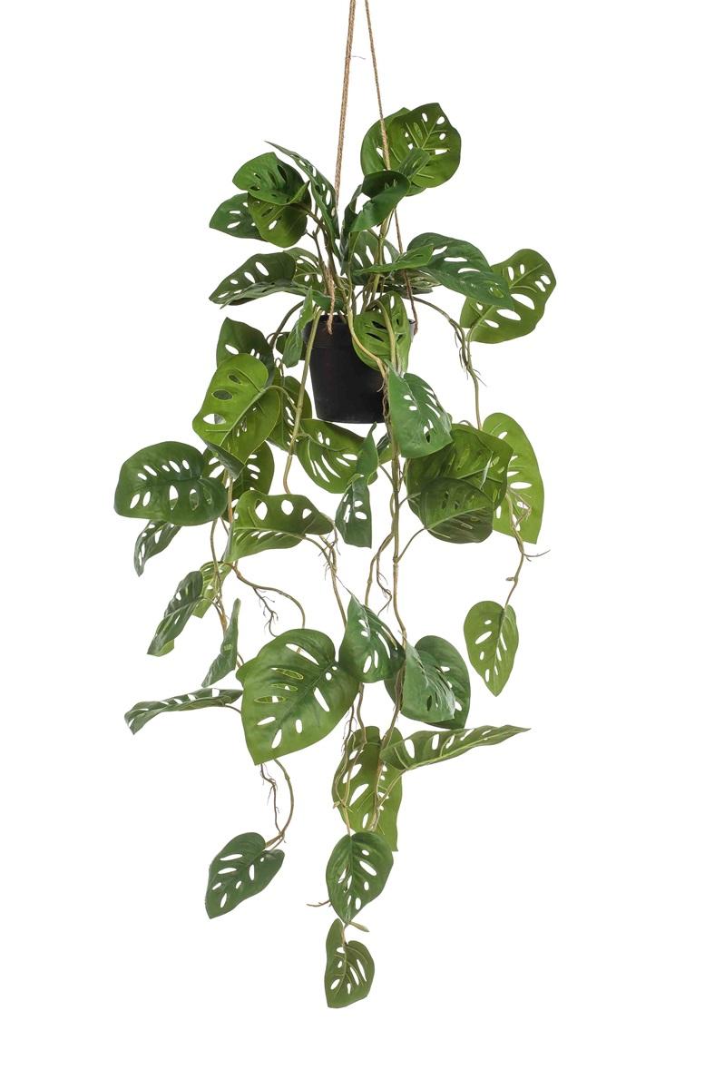 Filodendro Monstera adansonii artificial, maceta colgante VANIELLE, maceta decorativa, 80 cm