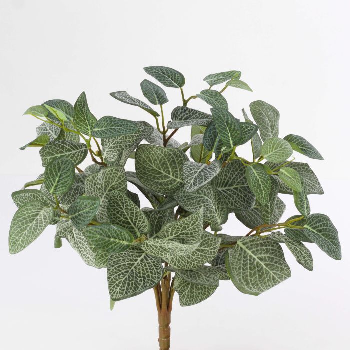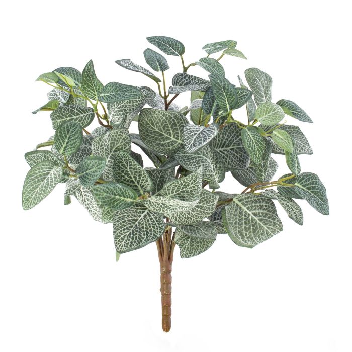 Fittonia artificial en color verde y blanco. La planta posee una altura aproximada de 35 cm y se entrega en vara de ajuste.