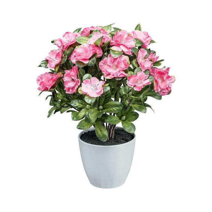 Flor artificial azalea WHENFA en maceta decorativa blanca, rosa oscuro, 30 cm